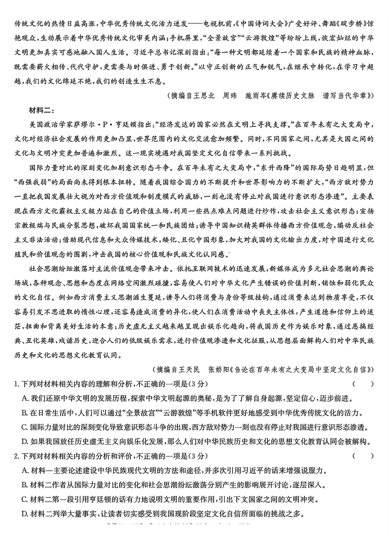 贵州九师联盟2024-2025学年高二上学期11月联考语文试题及答案