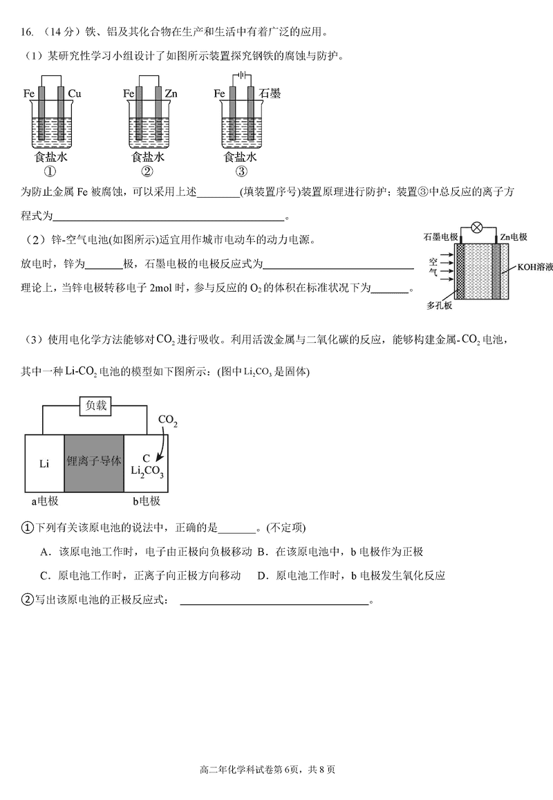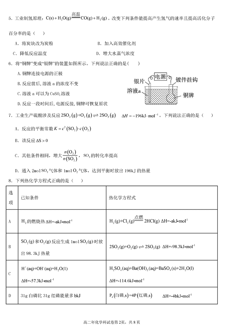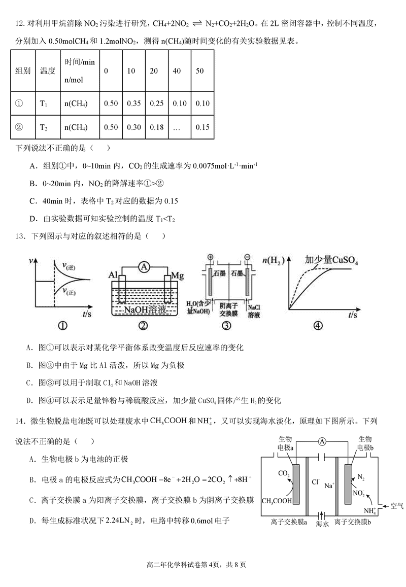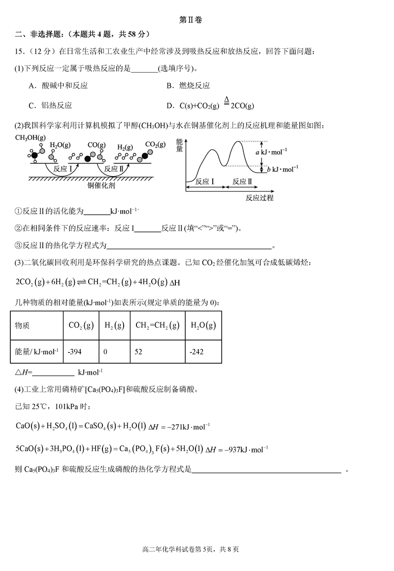厦泉五校2024年11月高二上学期期中联考化学试题及答案