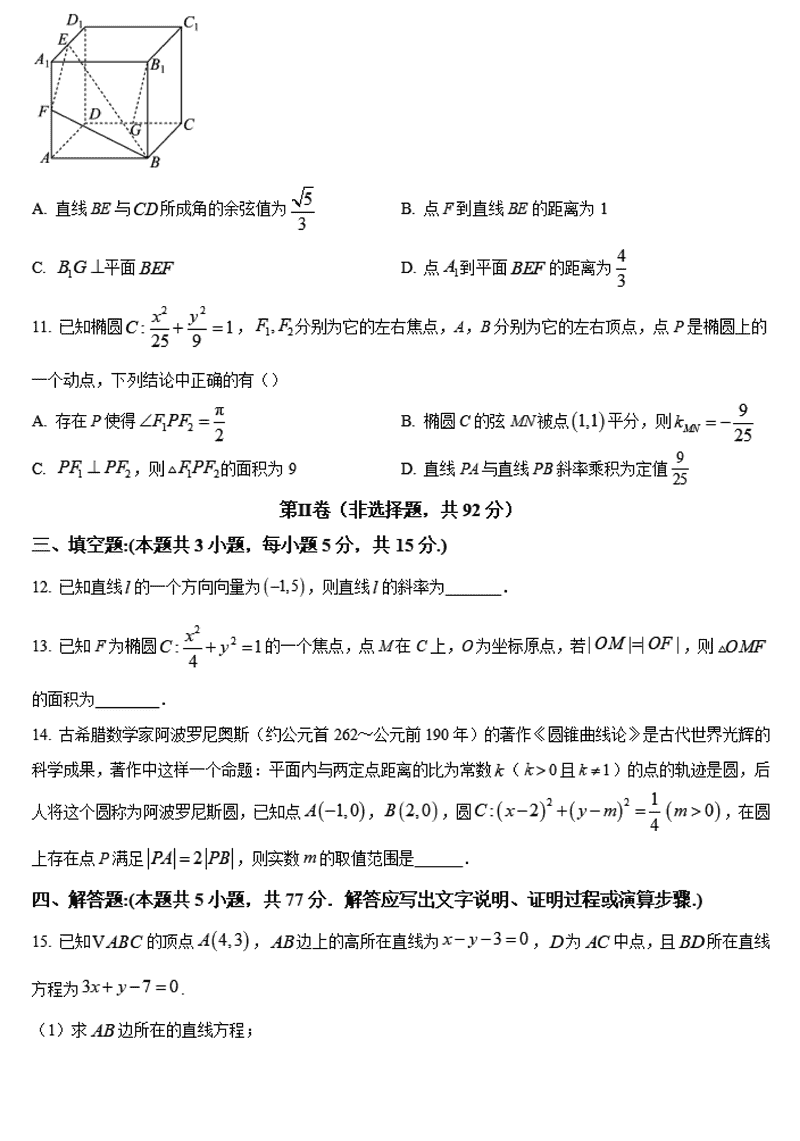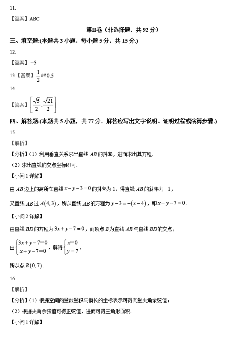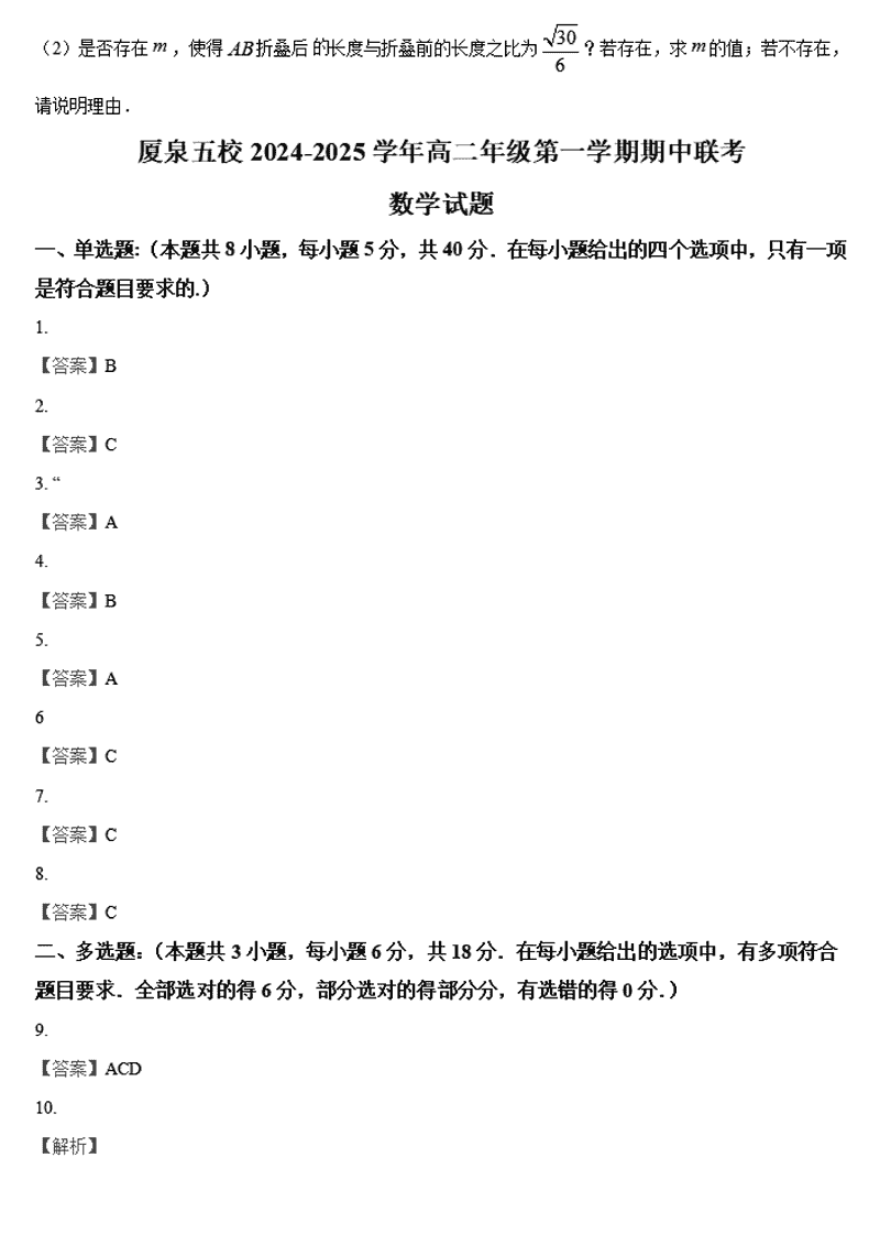 厦门市、泉州市五校2024-2025学年高二上学期11月期中联考数学考试已于近日开考,为方便考生考后及时查看考试情况,查漏补缺、弥补不足,本文整理了试题答案解析相关信息!