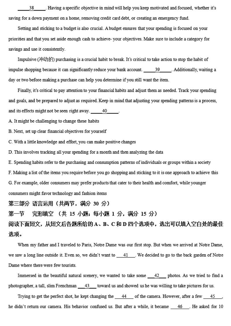 厦泉五校2024年11月高二上学期期中联考英语试题及答案