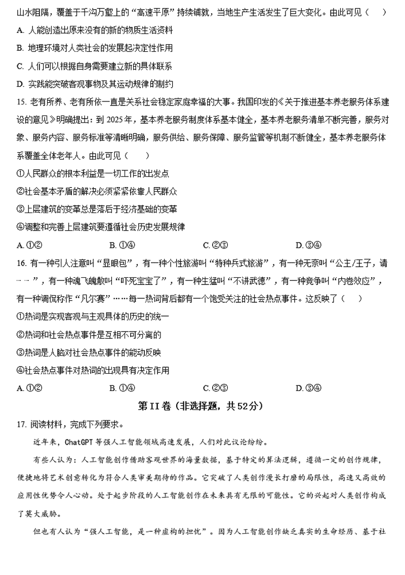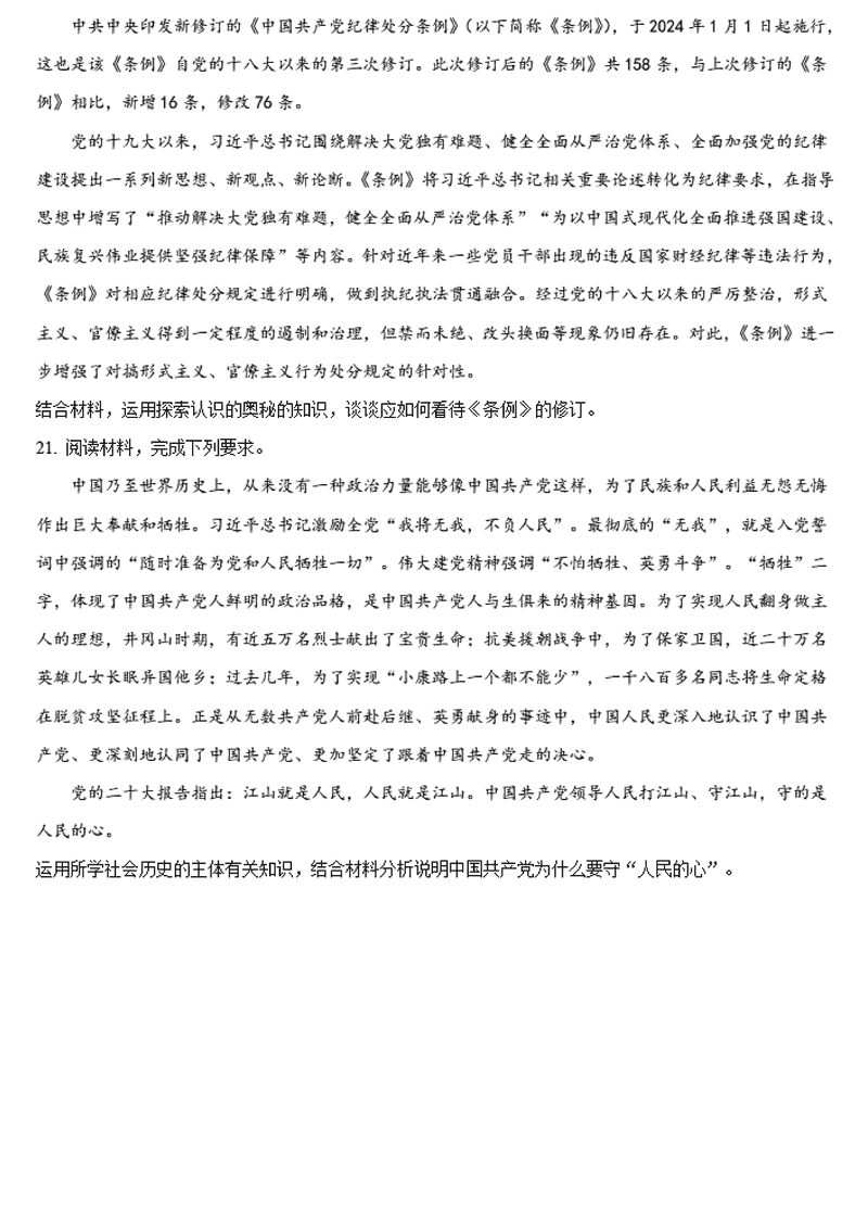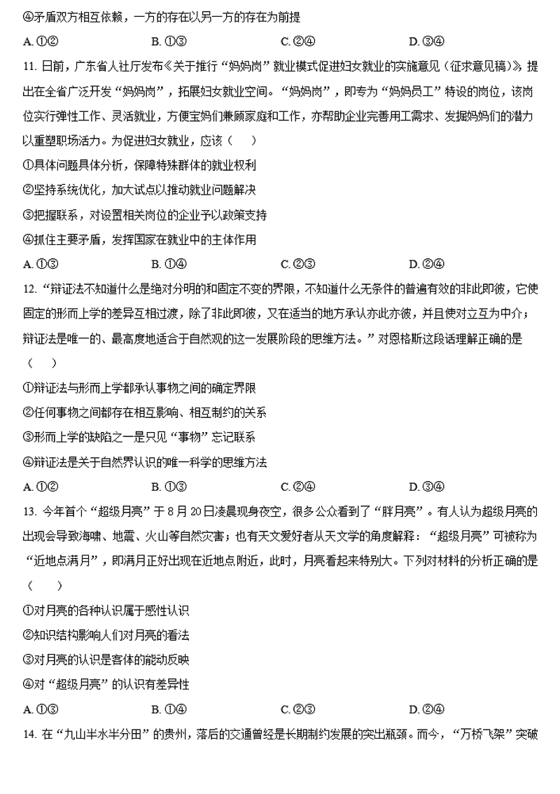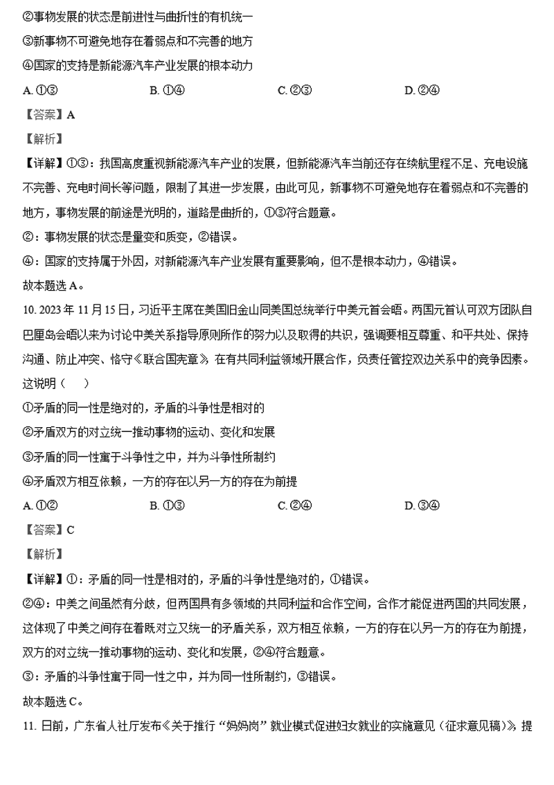 厦泉五校2024年11月高二上学期期中联考政治试题及答案