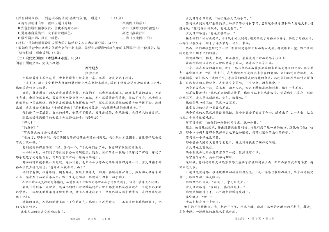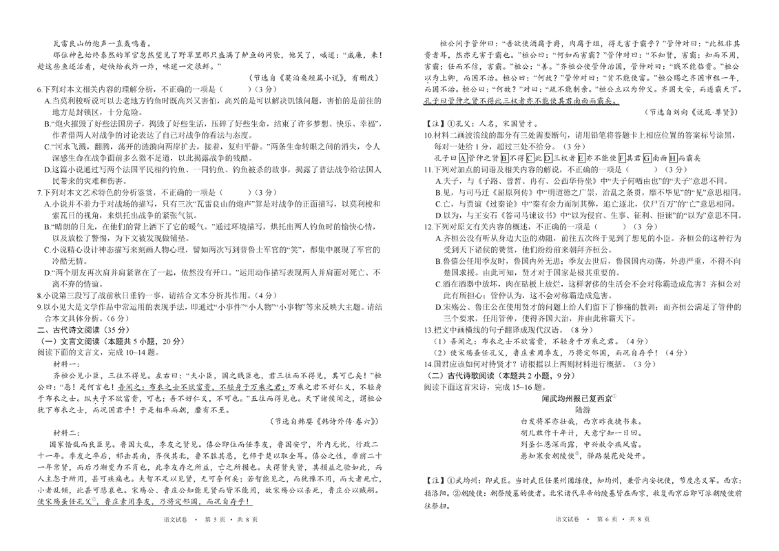 宁夏吴忠市2025届高三上学期学业水平适应性测试语文试题及答案