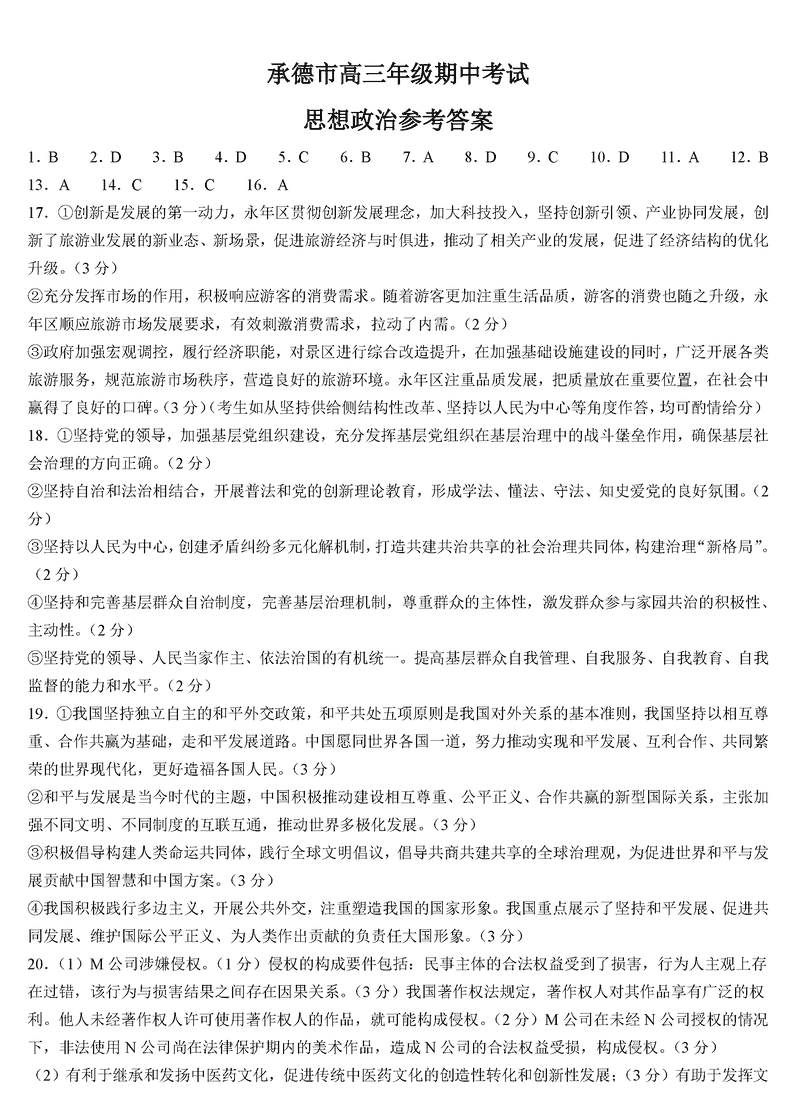 河北承德2024-2025学年高三上学期期中政治考试已于近日开考,为方便考生考后及时查看考试情况,查漏补缺、弥补不足,本文整理了试题答案解析相关信息!