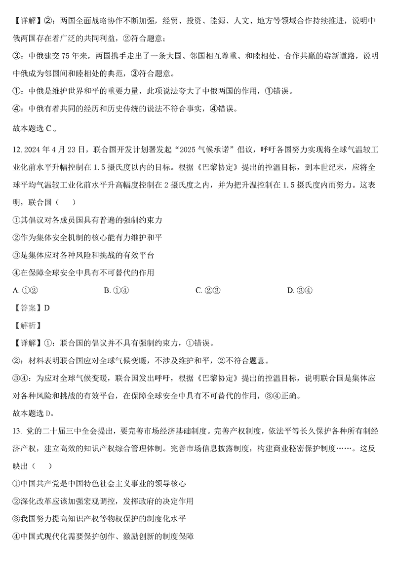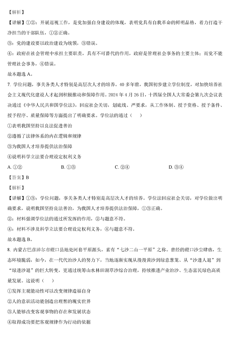 政治试题及答案解析