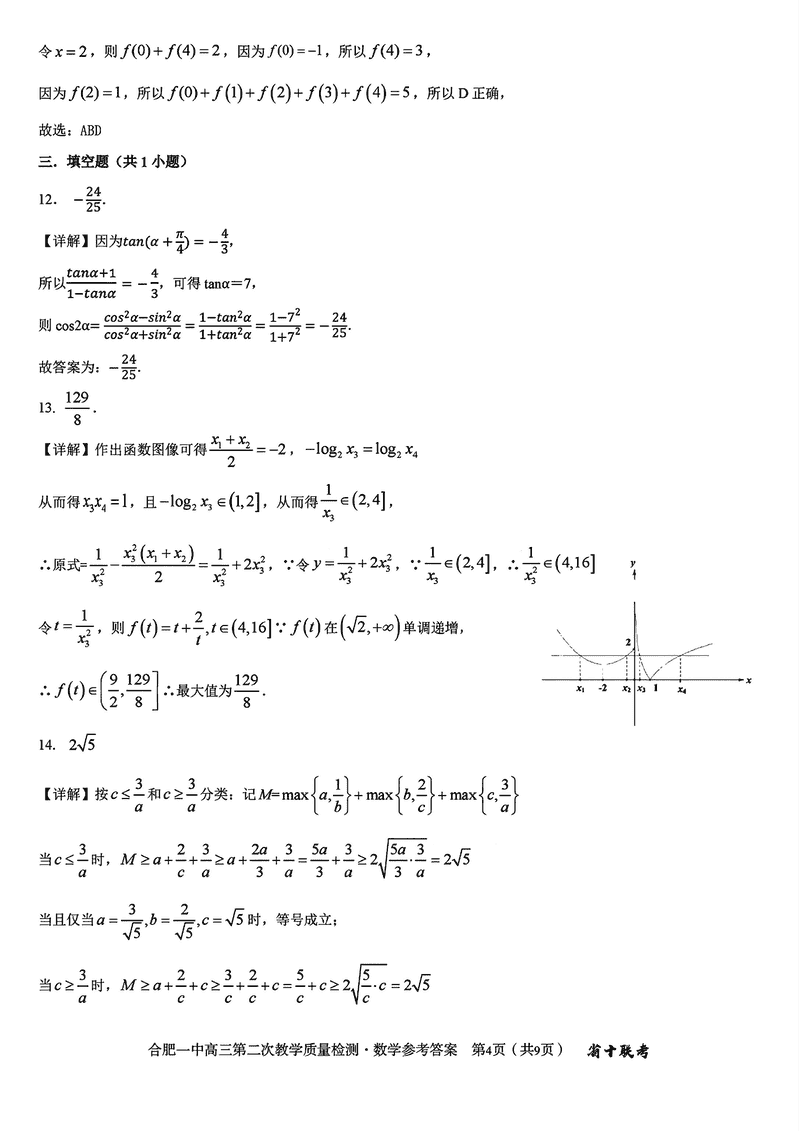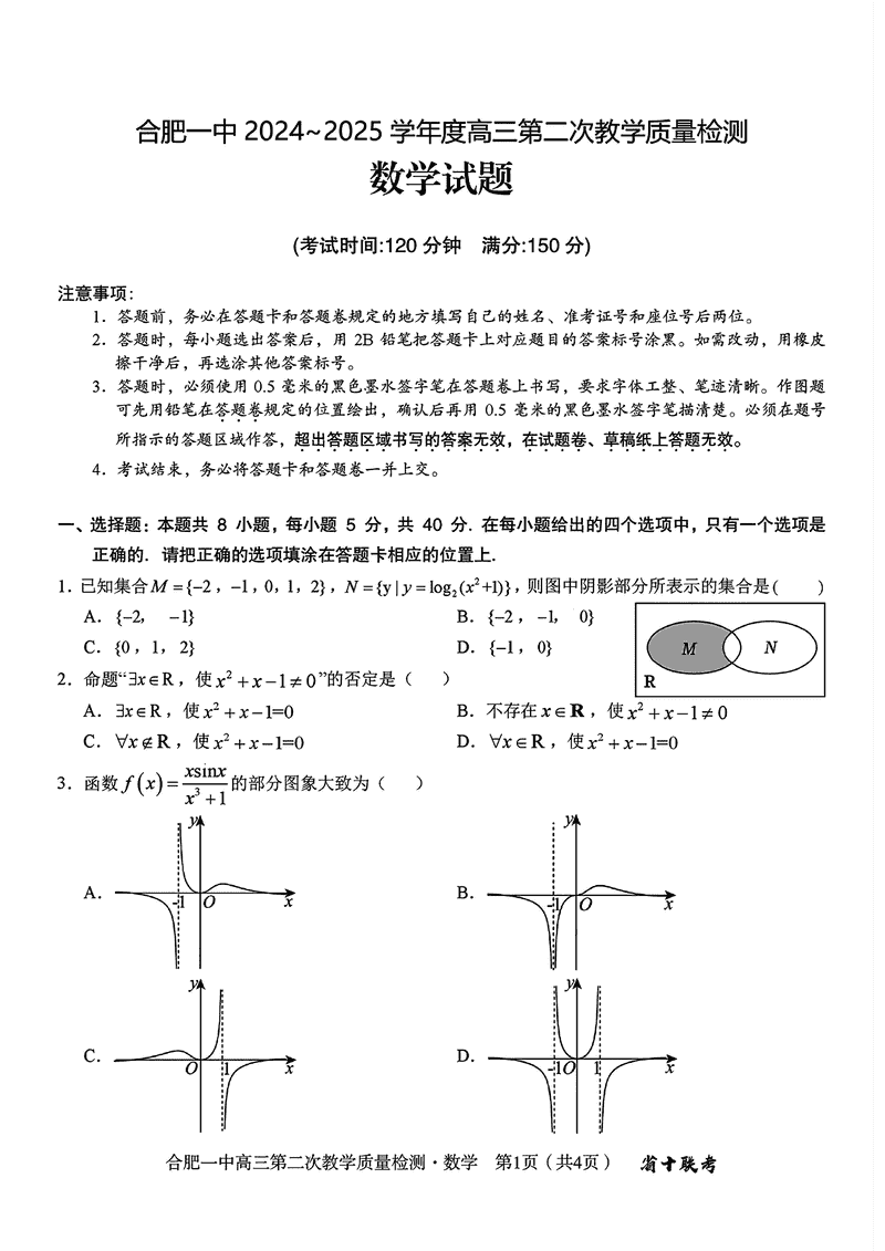 安徽省十联考合肥一中2025届高三第二次质检数学试题及答案