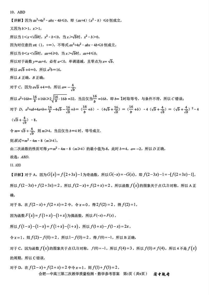 安徽省十联考合肥一中2025届高三11月第二次质检数学考试已于近日开考,为方便考生考后及时查看考试情况,查漏补缺、弥补不足,本文整理了试题答案解析相关信息!