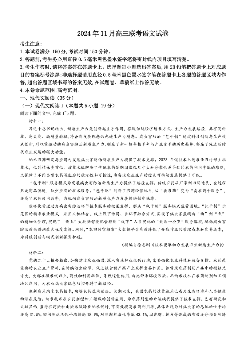 九师联盟2025届高三上学期11月联考语文试题及答案 时间:2024-11-29 16:31 语文试题 九师联盟2025届高三上学期11月联考语文考试已于近日开考,为方便考生考后及时查看考试情况,查漏补缺、弥补不足,本文整理了试题答案解析相关信息! 汇总:九师联盟2025届高三上学期11月联考试题及答案汇总 语文试题及答案解析