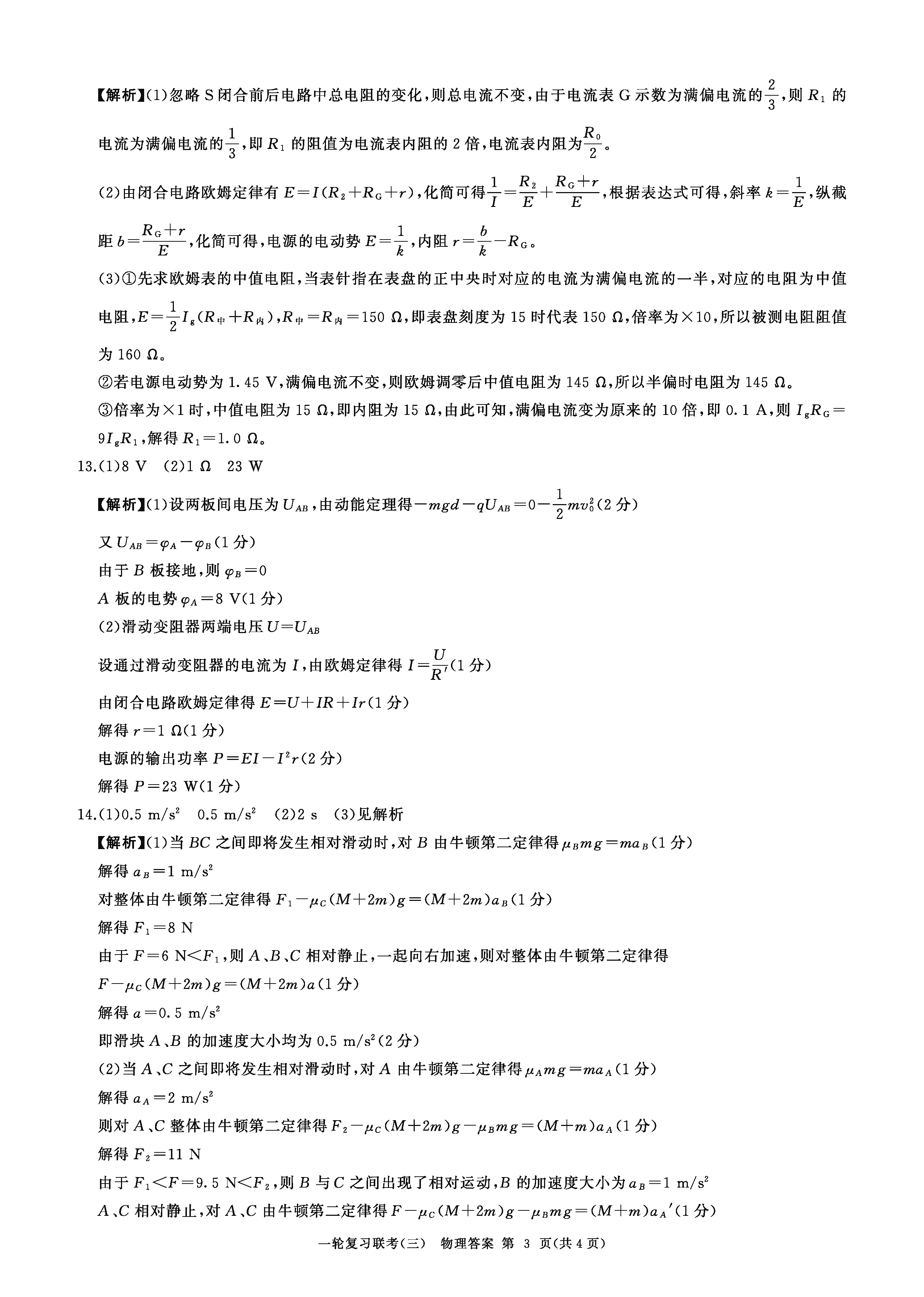百师联盟2025届高三一轮复习联考(三)物理试题及答案