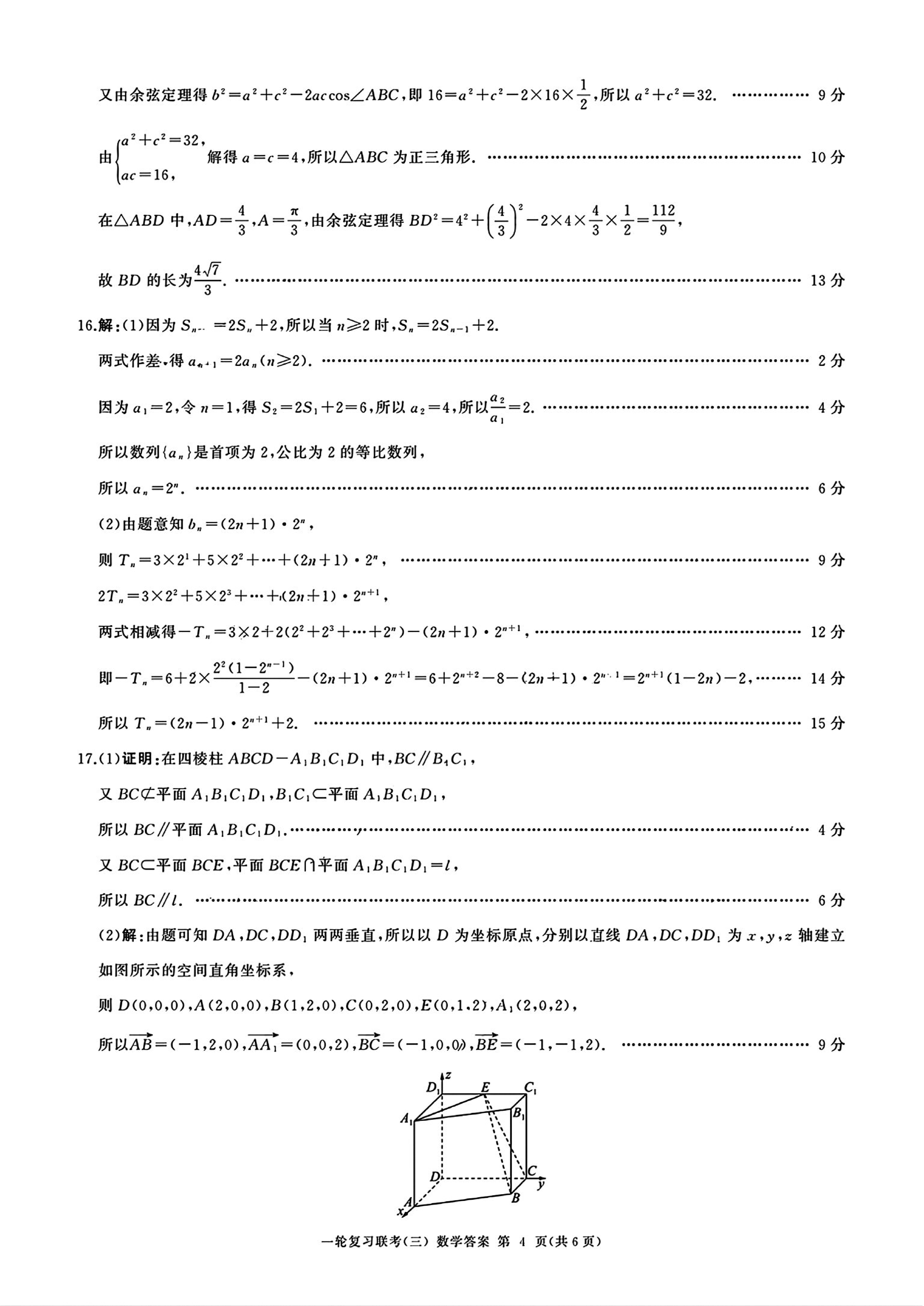 百师联盟2025届高三一轮复习联考(三)数学试题及答案