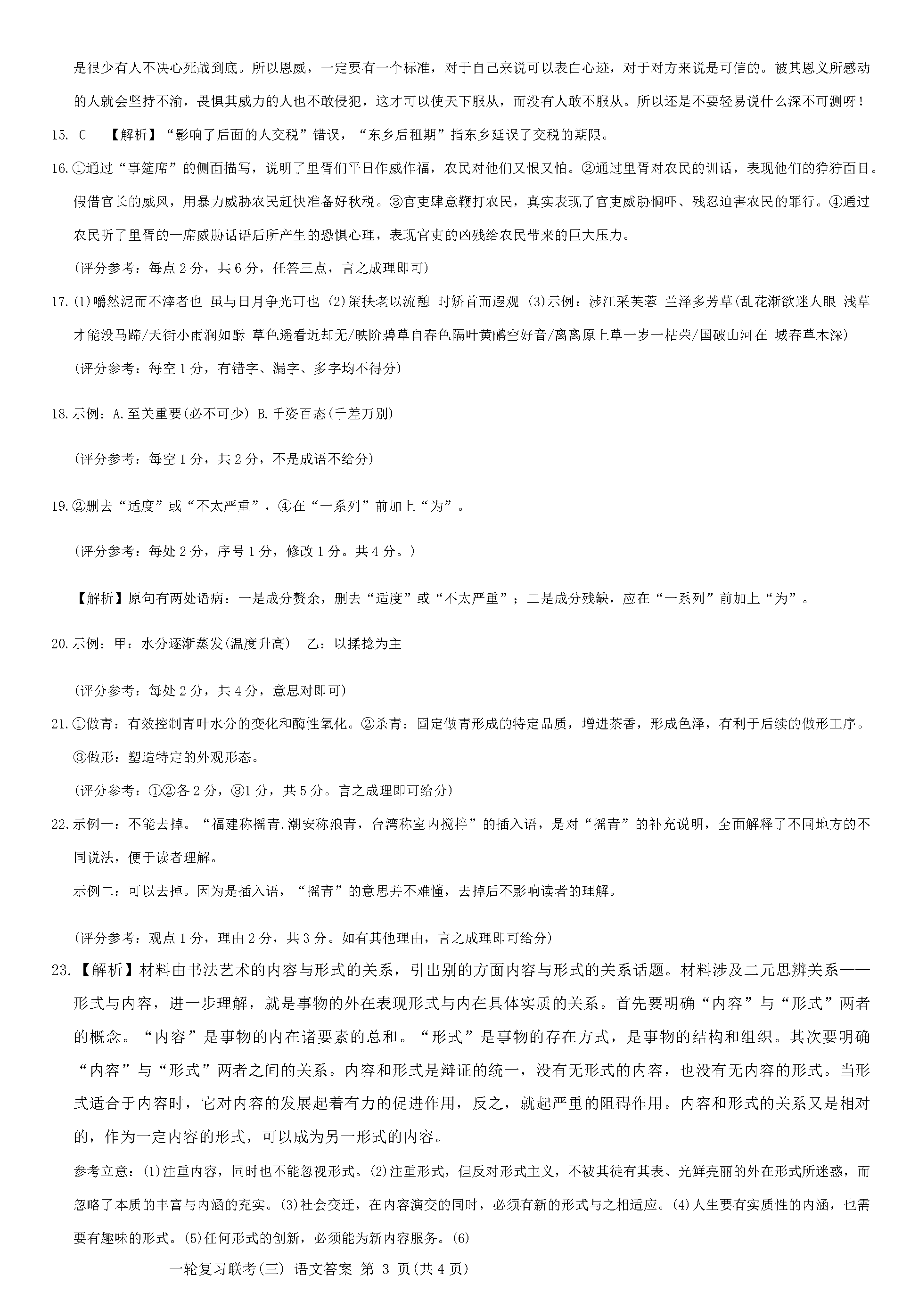 百师联盟2025届高三一轮复习联考(三)语文试题及答案