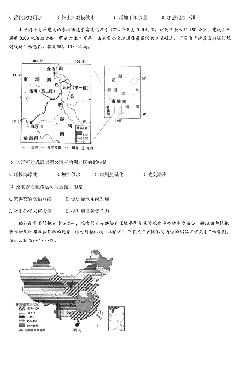 南通通州区、如东县2025届高三上学期期中联考地理试题及答案