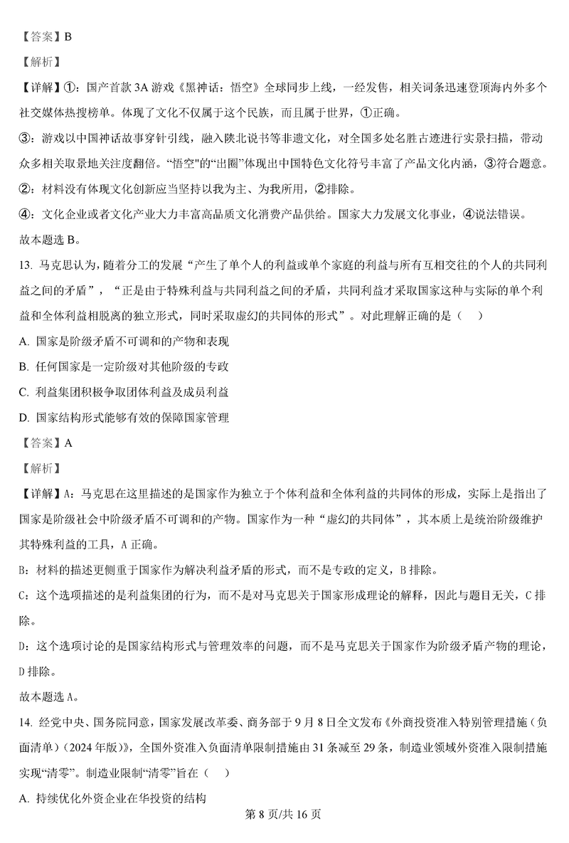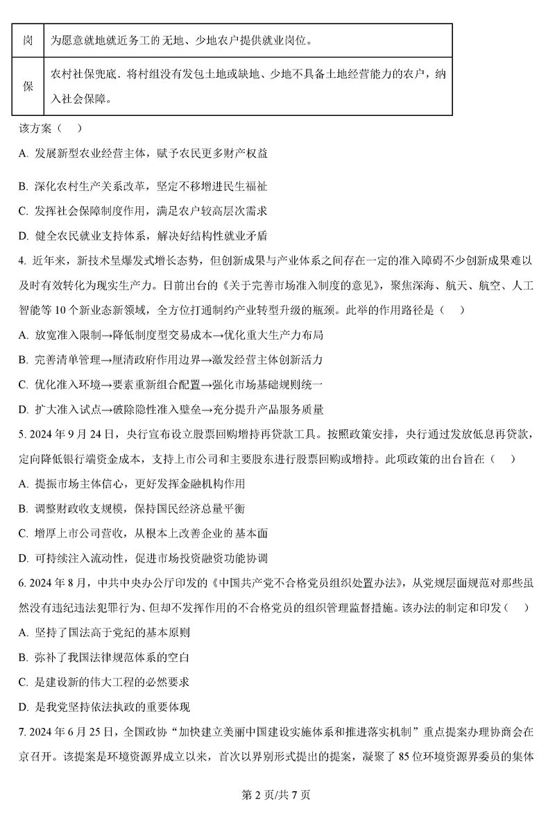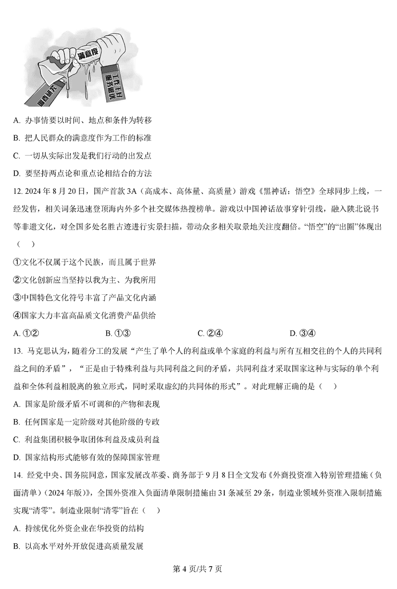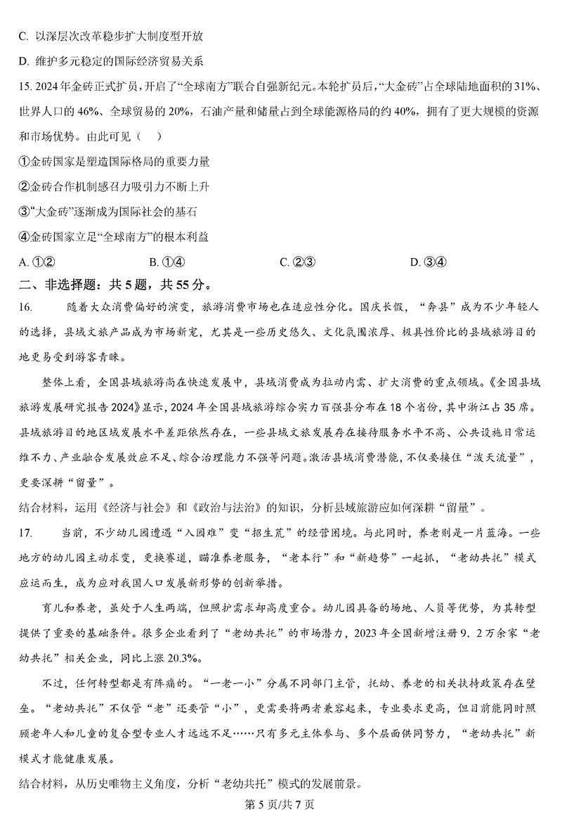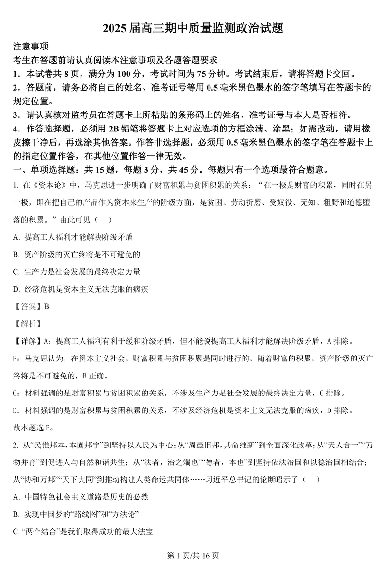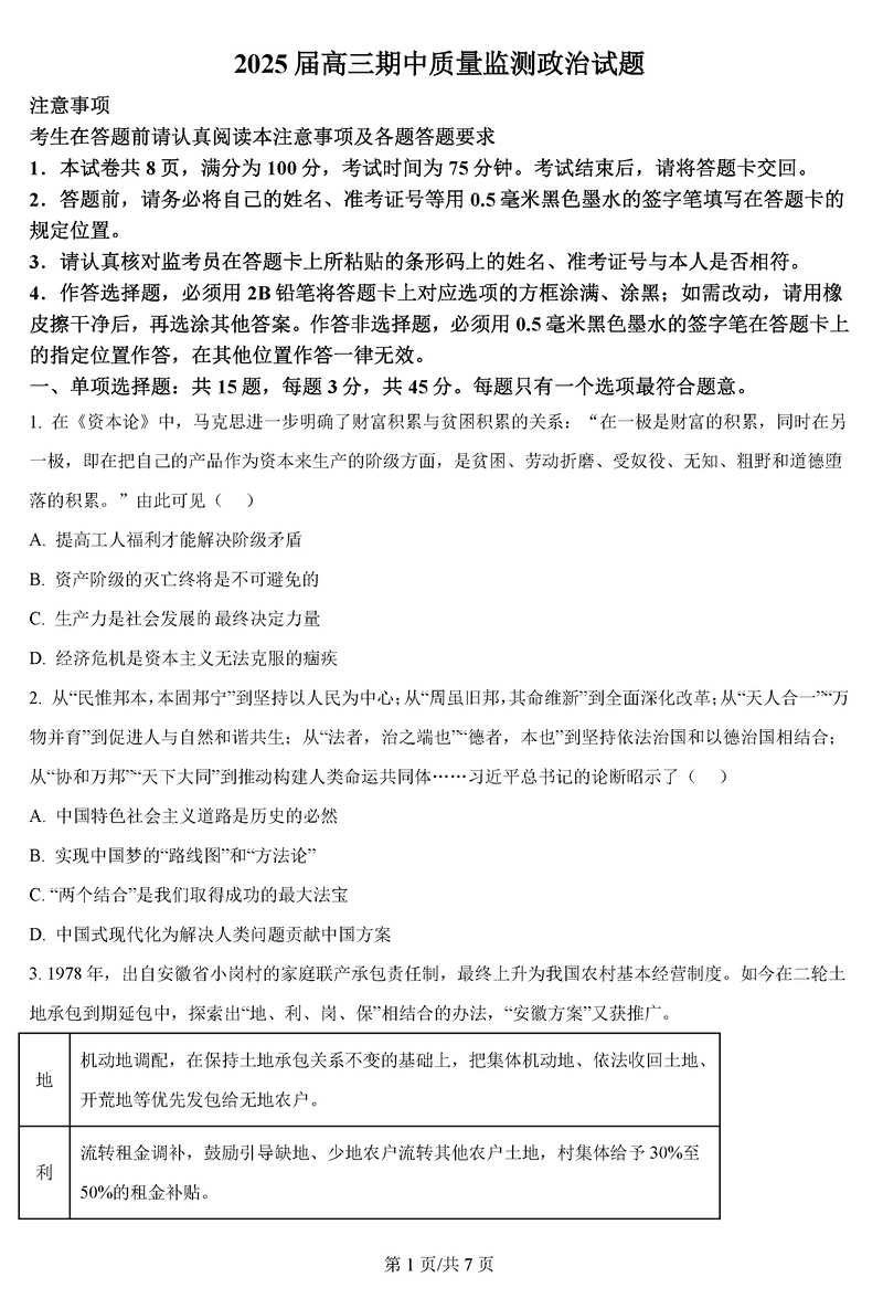 南通通州区、如东县2025届高三上学期期中联考政治试题及答案