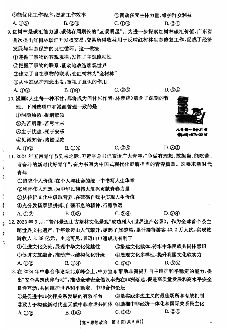 广东2025届高三金太阳11月联考政治试题及答案 时间:2024-11-30 18:09 广东 文综试题 广东2025届高三金太阳11月联考政治考试已于近日开考,为方便考生考后及时查看考试情况,查漏补缺、弥补不足,本文整理了试题答案解析相关信息! 汇总:广东2025届高三金太阳11月联考试题及答案汇总 政治试题及答案解析