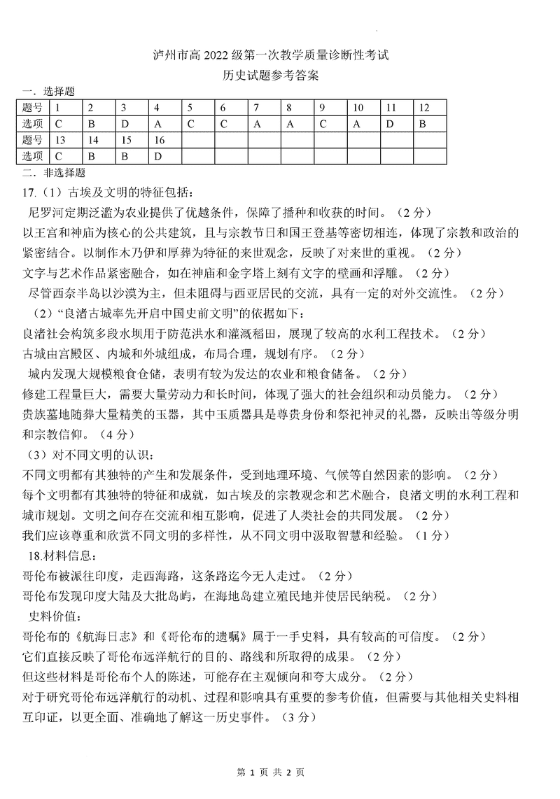 泸州一诊高2025届第一次教学质量诊断历史考试已于近日开考,为方便考生考后及时查看考试情况,查漏补缺、弥补不足,本文整理了试题答案解析相关信息!