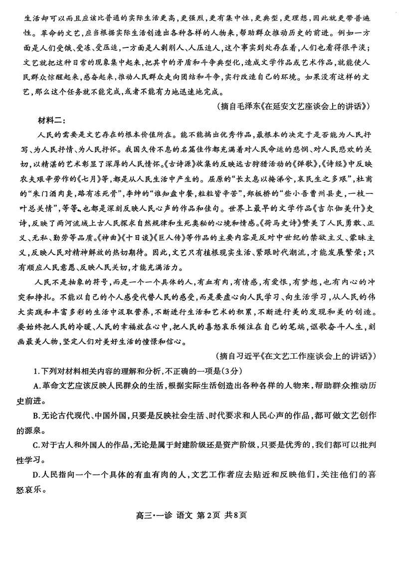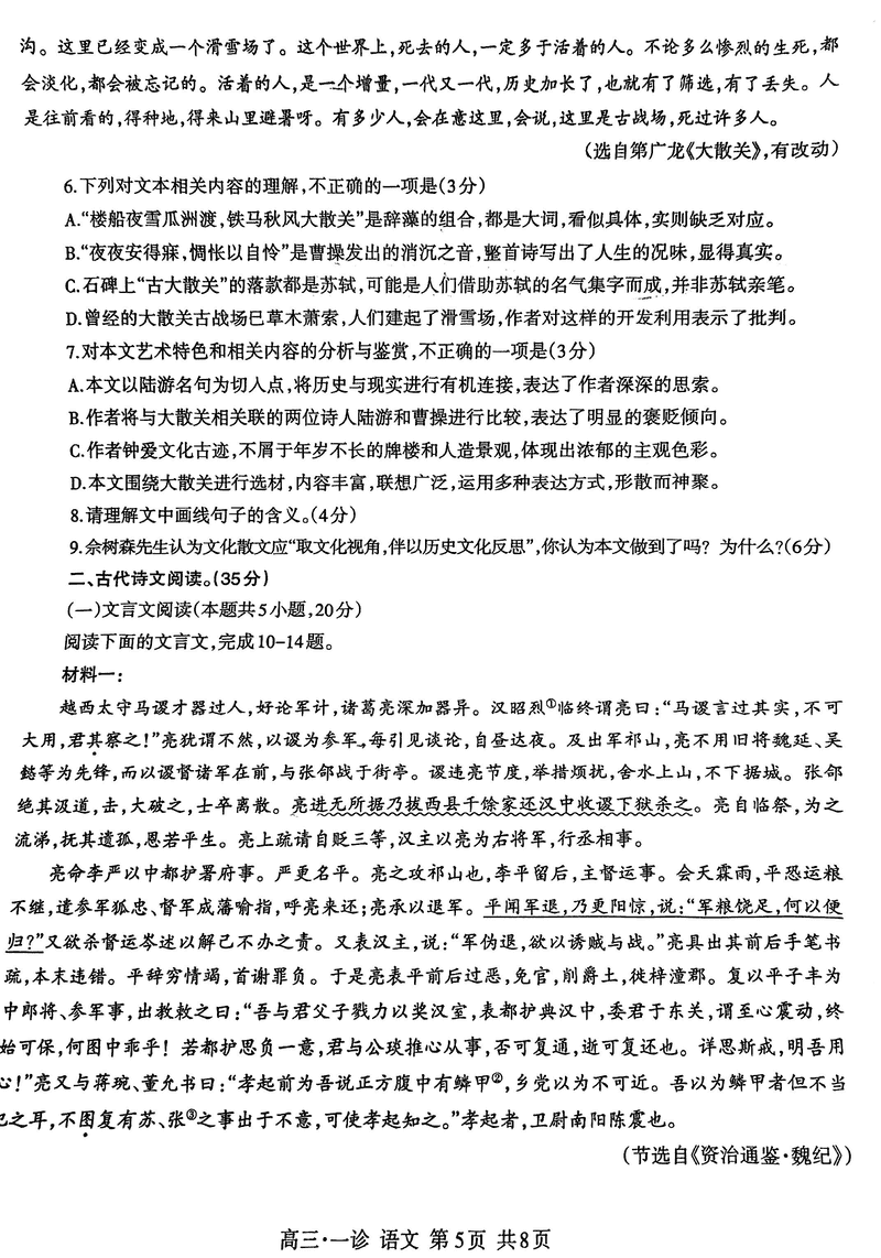 泸州一诊高2025届第一次教学质量诊断语文试题及答案