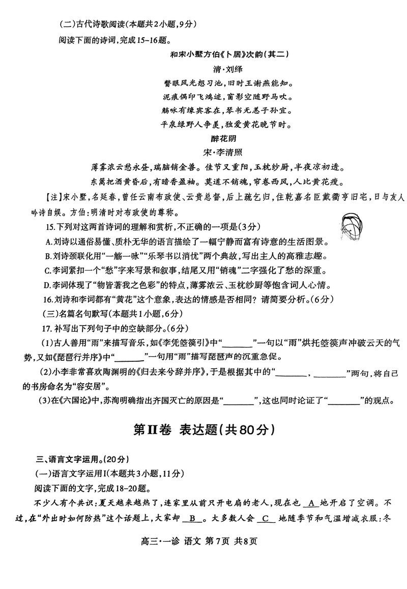 泸州一诊高2025届第一次教学质量诊断语文考试已于近日开考,为方便考生考后及时查看考试情况,查漏补缺、弥补不足,本文整理了试题答案解析相关信息!