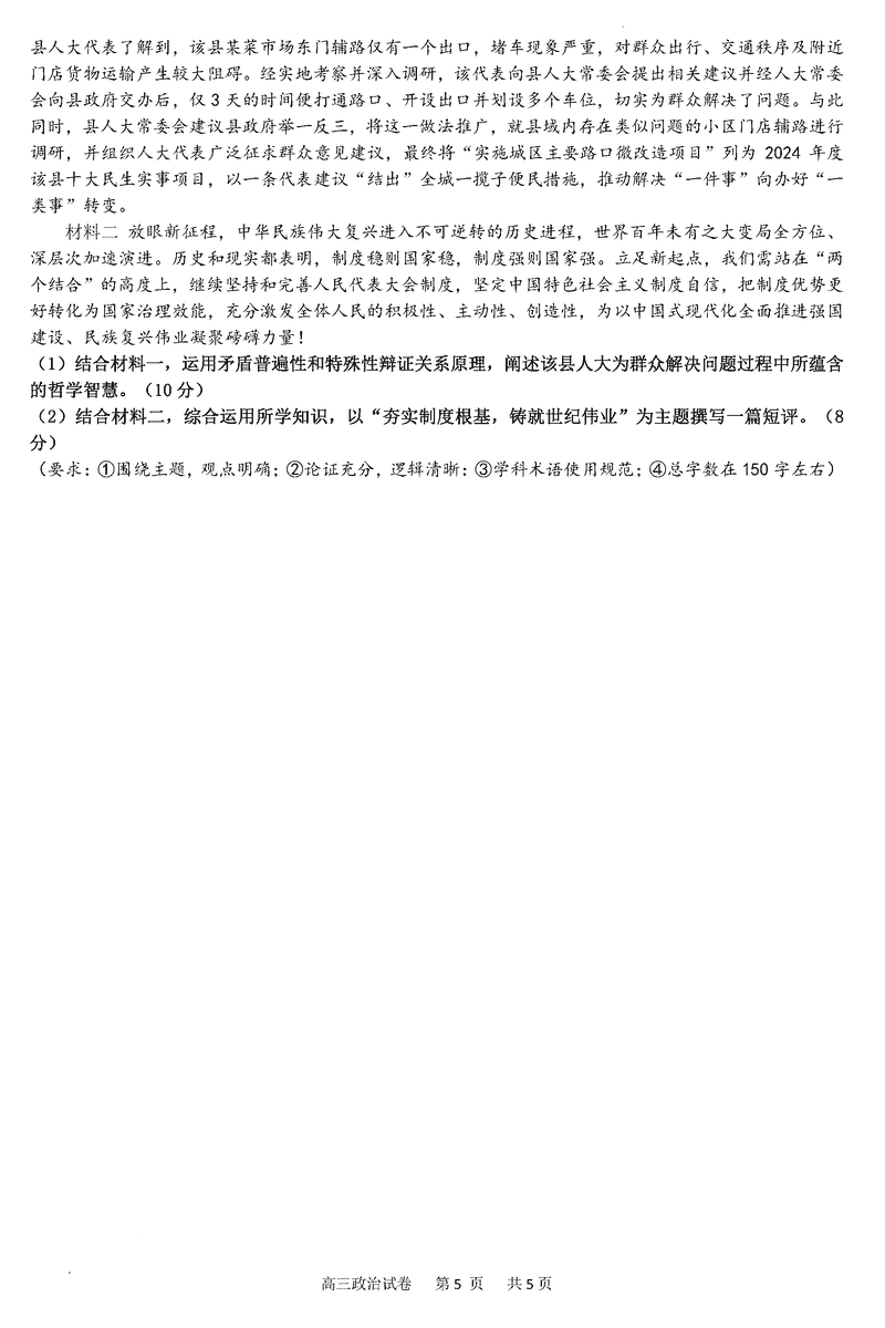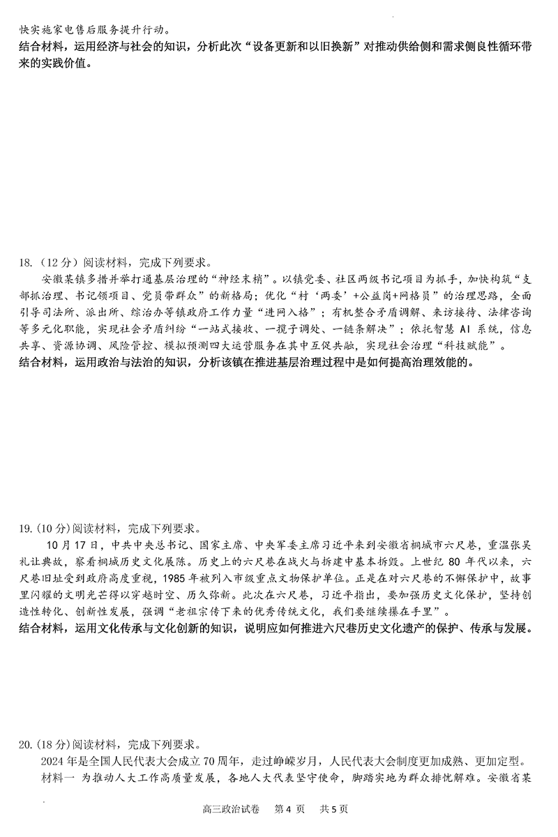 合肥六校联盟2025届高三上学期期中联考政治试题及答案