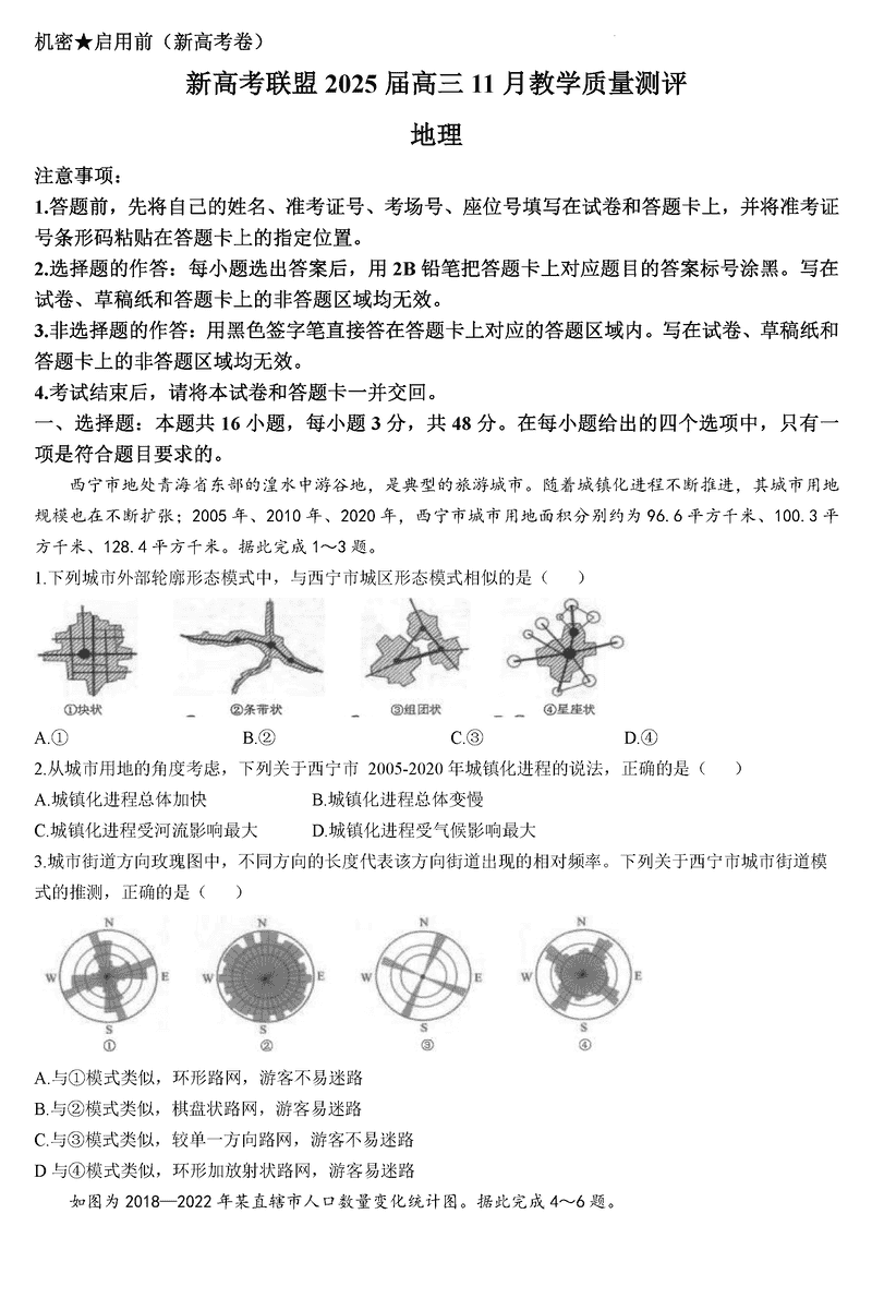 华大新高考联盟2025届高三11月教学质量测评地理试题及答案
