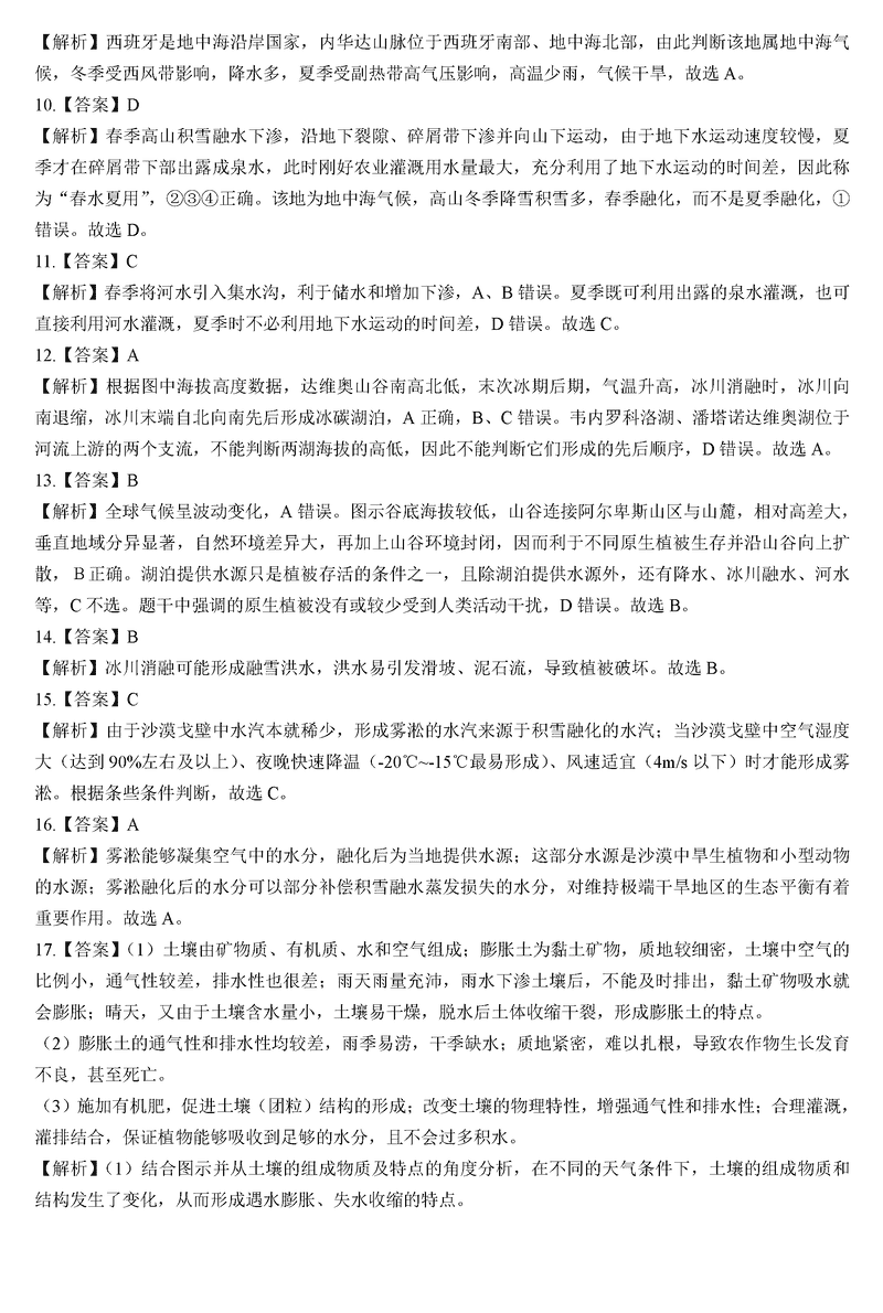 地理试题及答案解析