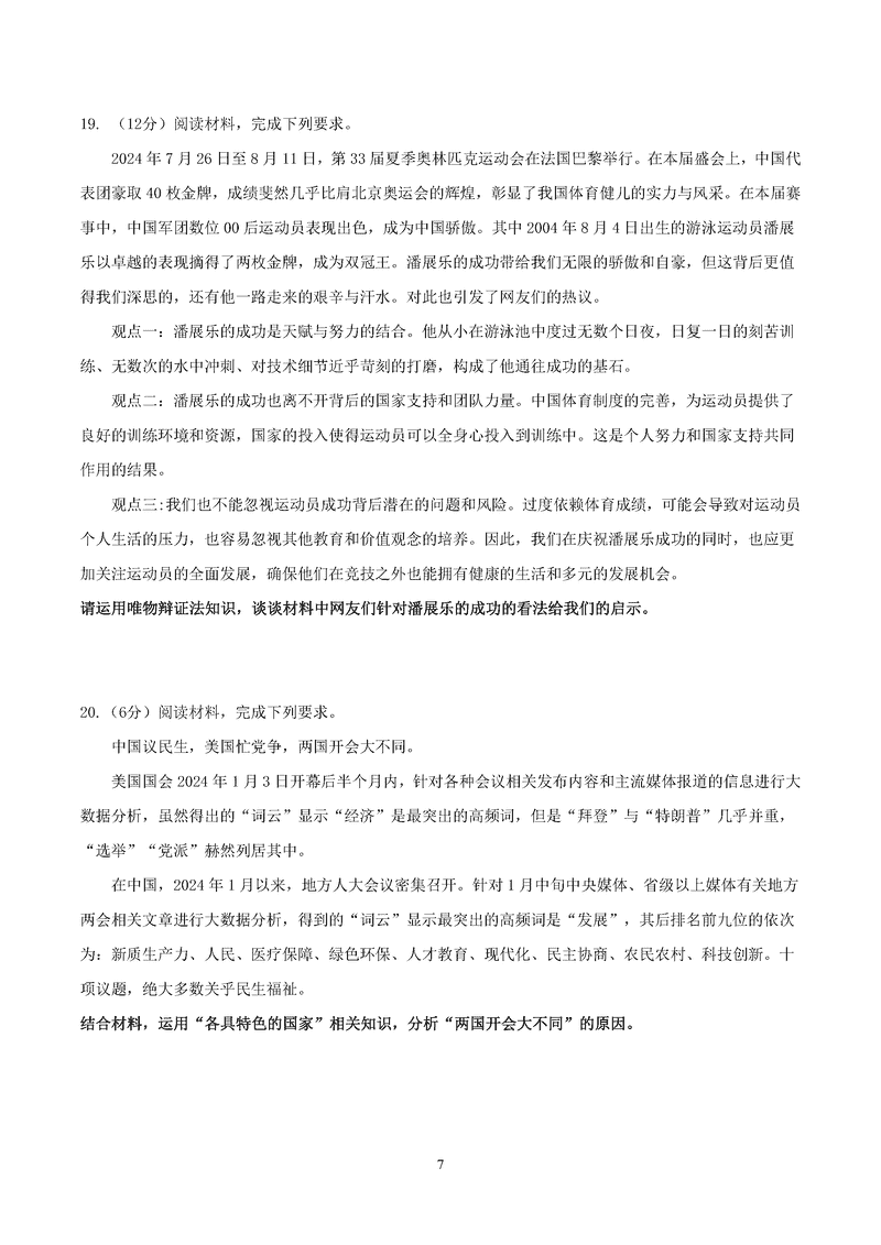 南京六校联合体2025届高三上学期11月联考政治试题及答案