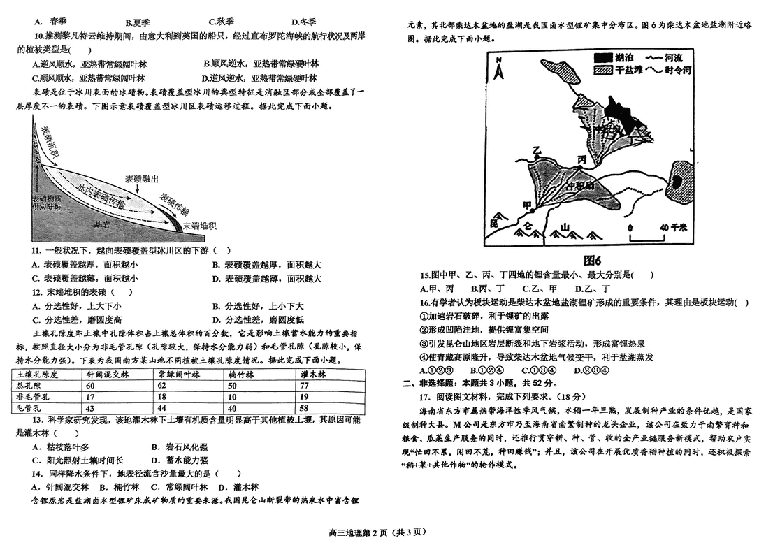 地理试题及答案解析