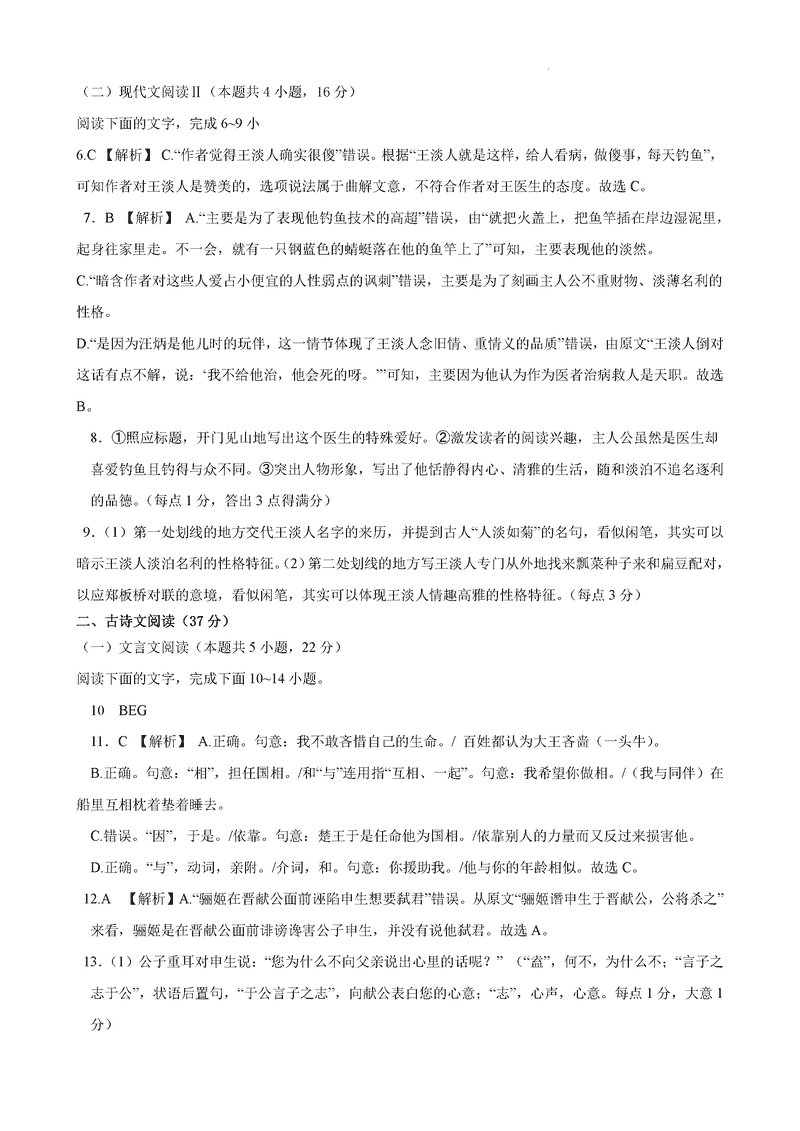 语文试题及答案解析