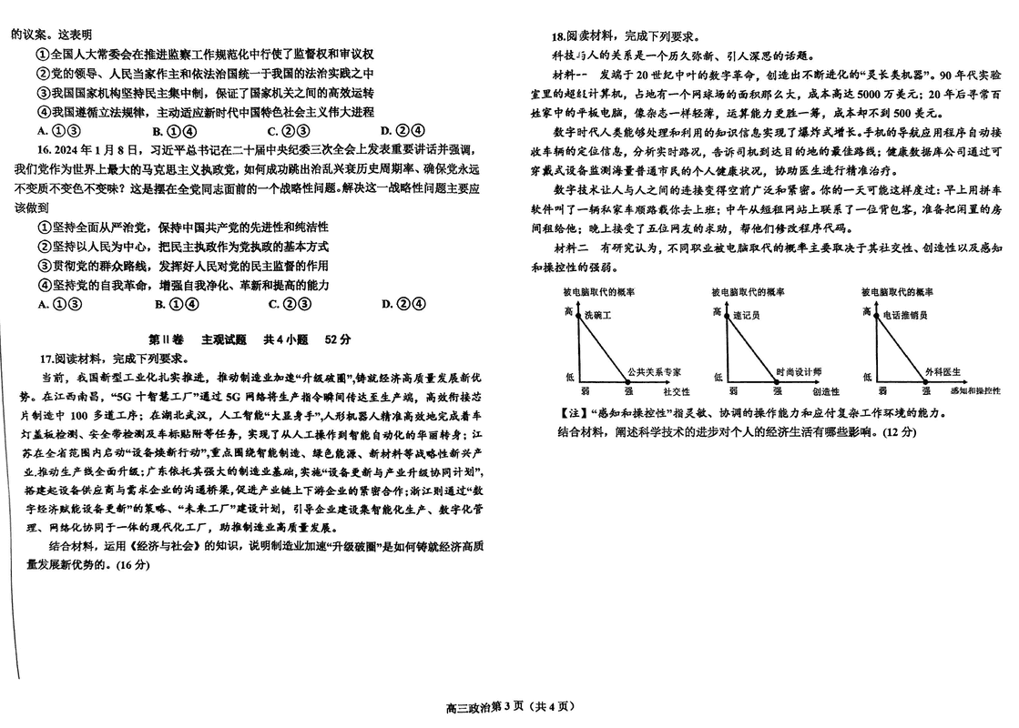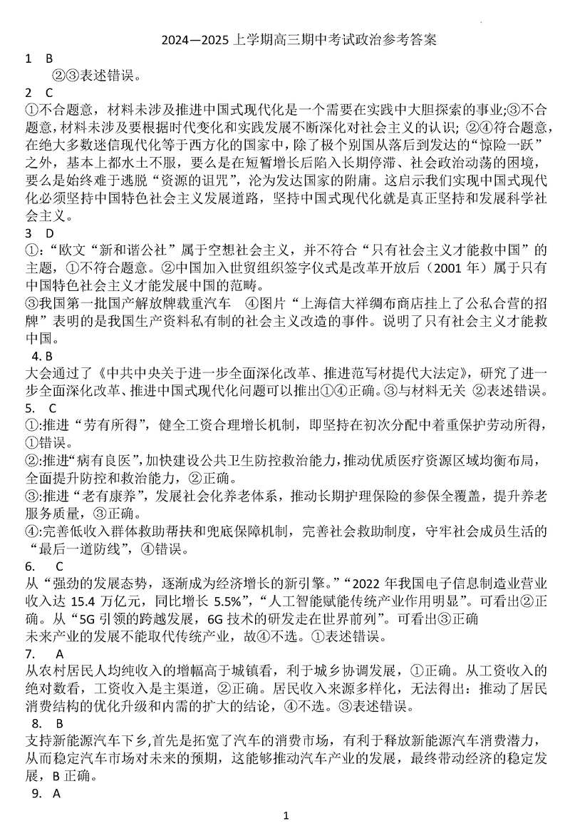 鞍山市重点高中协作校2025届高三上学期期中政治试题及答案