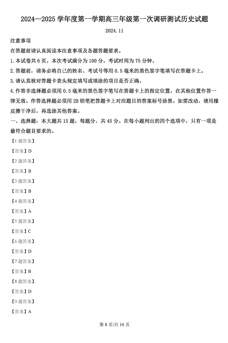 淮安市2025届高三上学期第一次调研测试历史考试已于近日开考,为方便考生考后及时查看考试情况,查漏补缺、弥补不足,本文整理了试题答案解析相关信息!