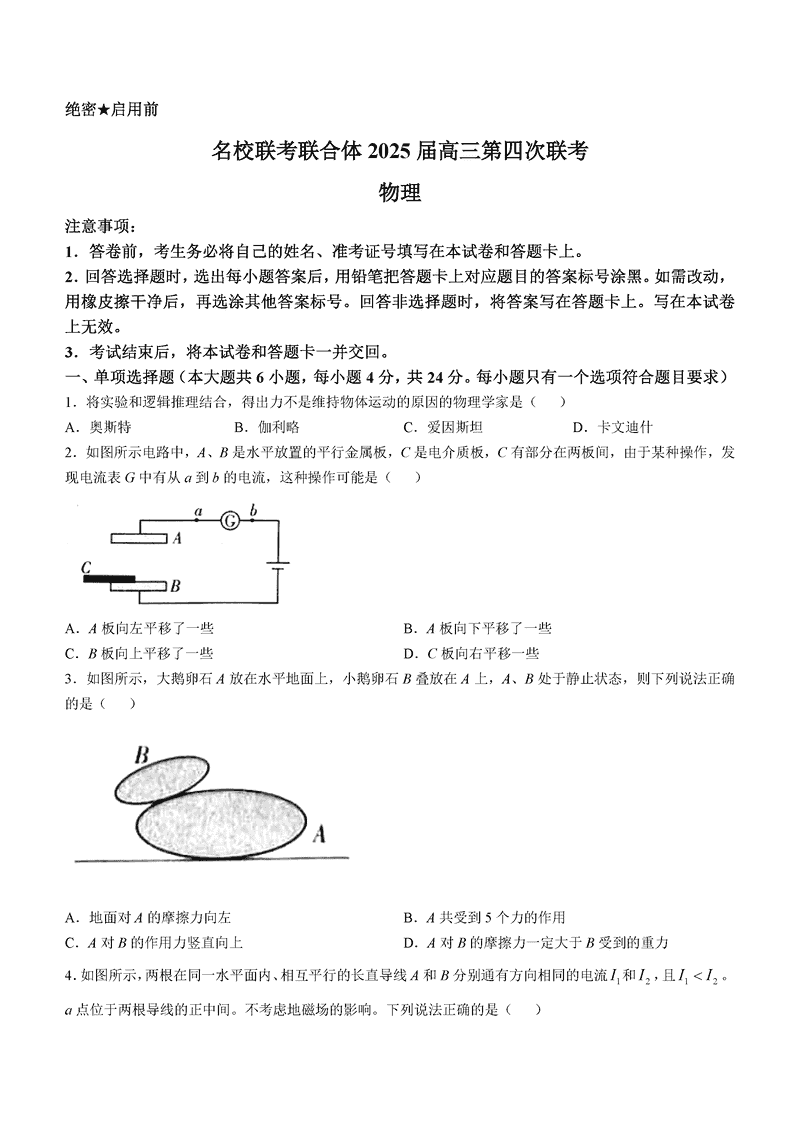 湖南名校联考联合体2025届高三第四次联考物理试题及答案