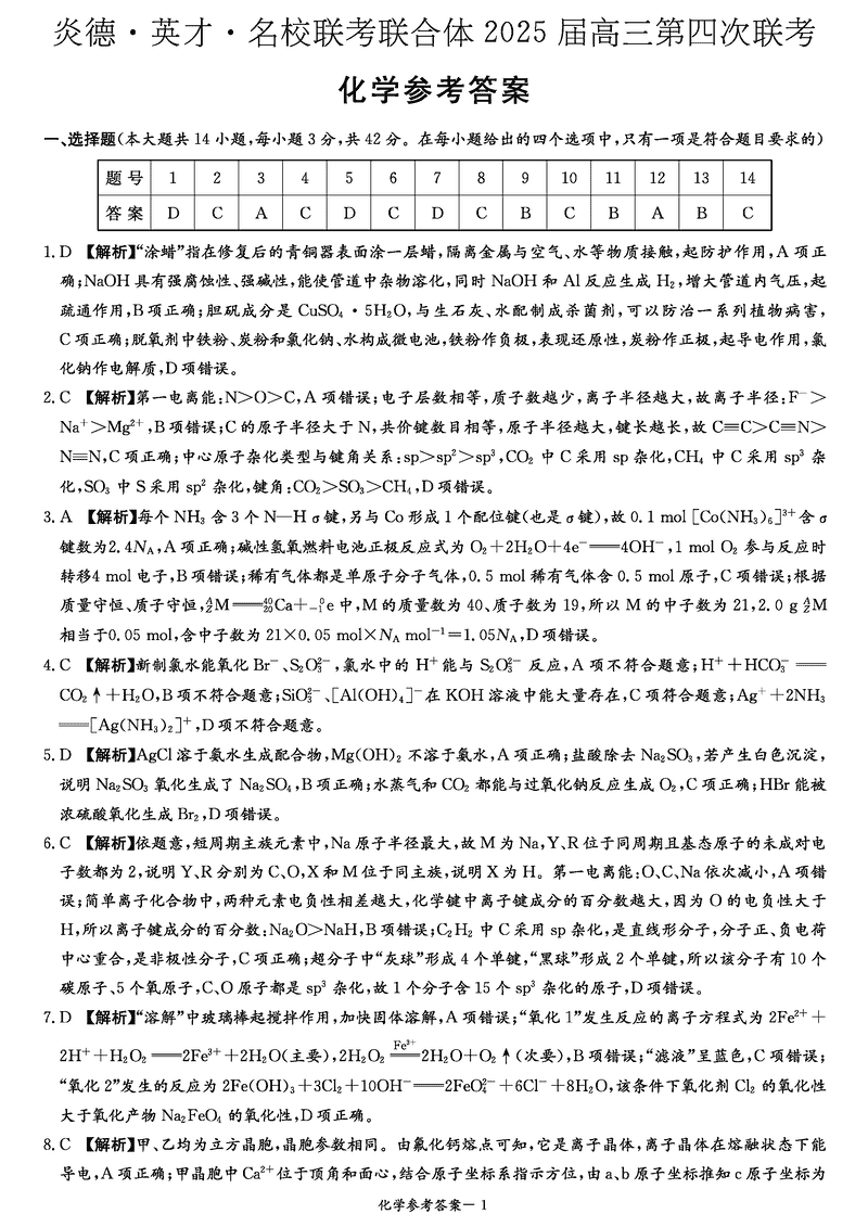 湖南名校联考联合体2025届高三第四次联考化学考试已于近日开考,为方便考生考后及时查看考试情况,查漏补缺、弥补不足,本文整理了试题答案解析相关信息!