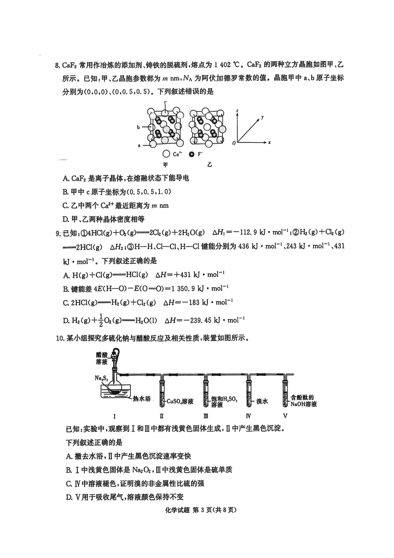 湖南名校联考联合体2025届高三第四次联考化学试题及答案