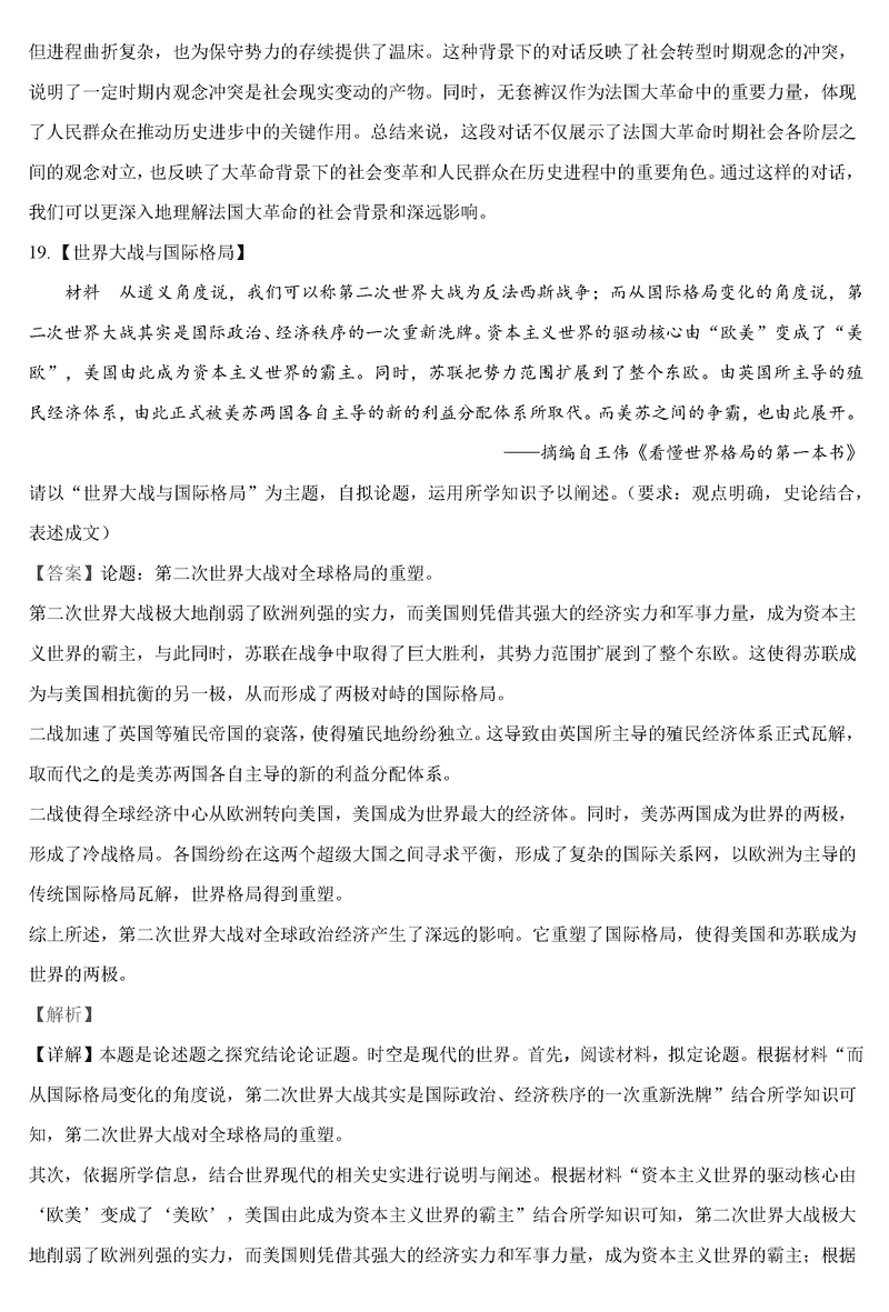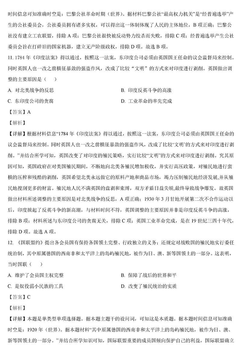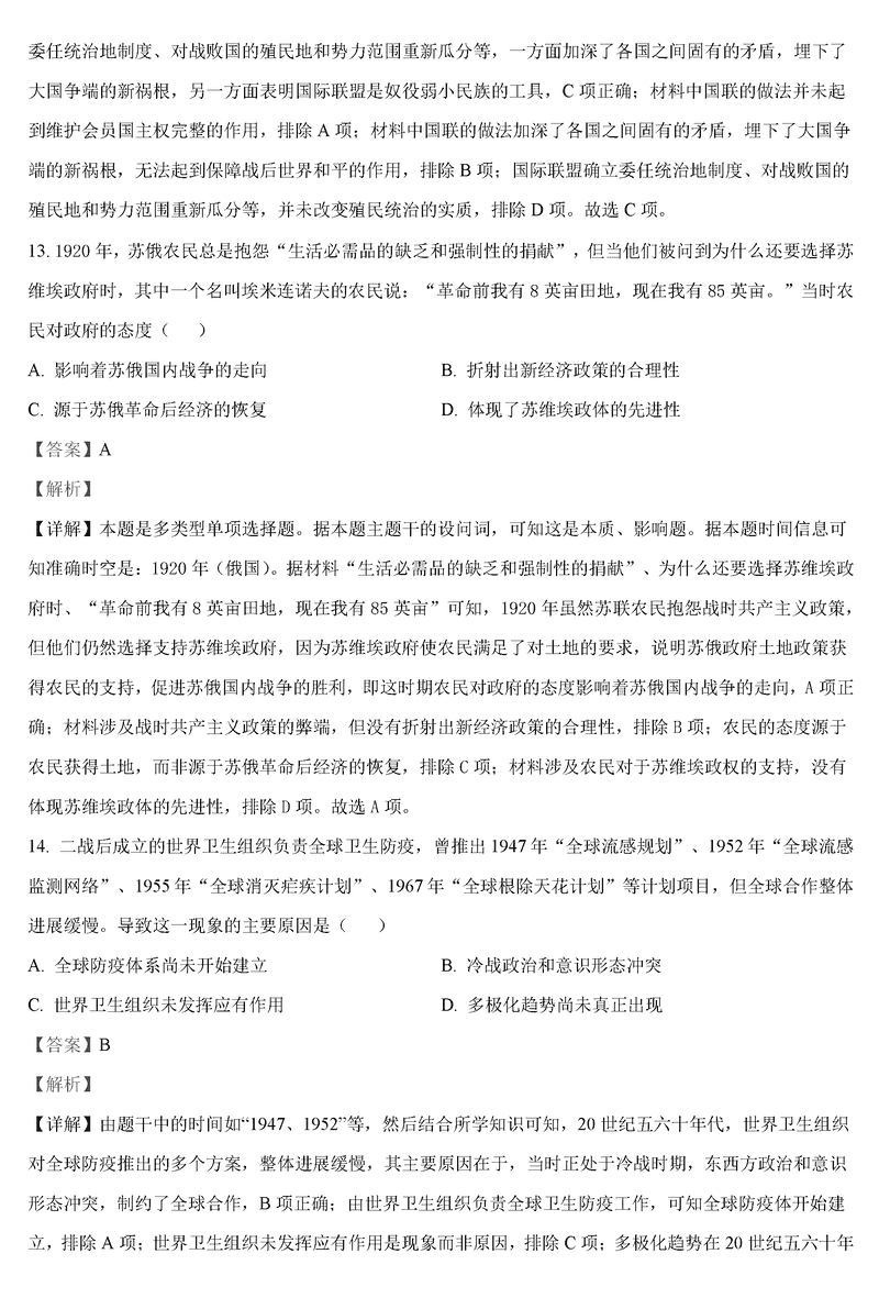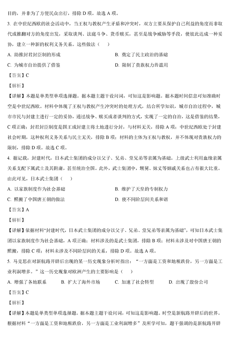 历史试题及答案解析
