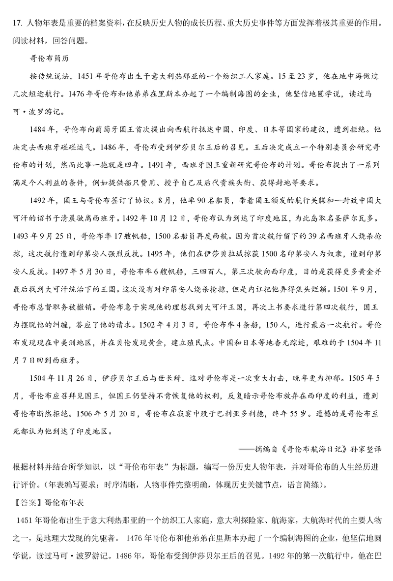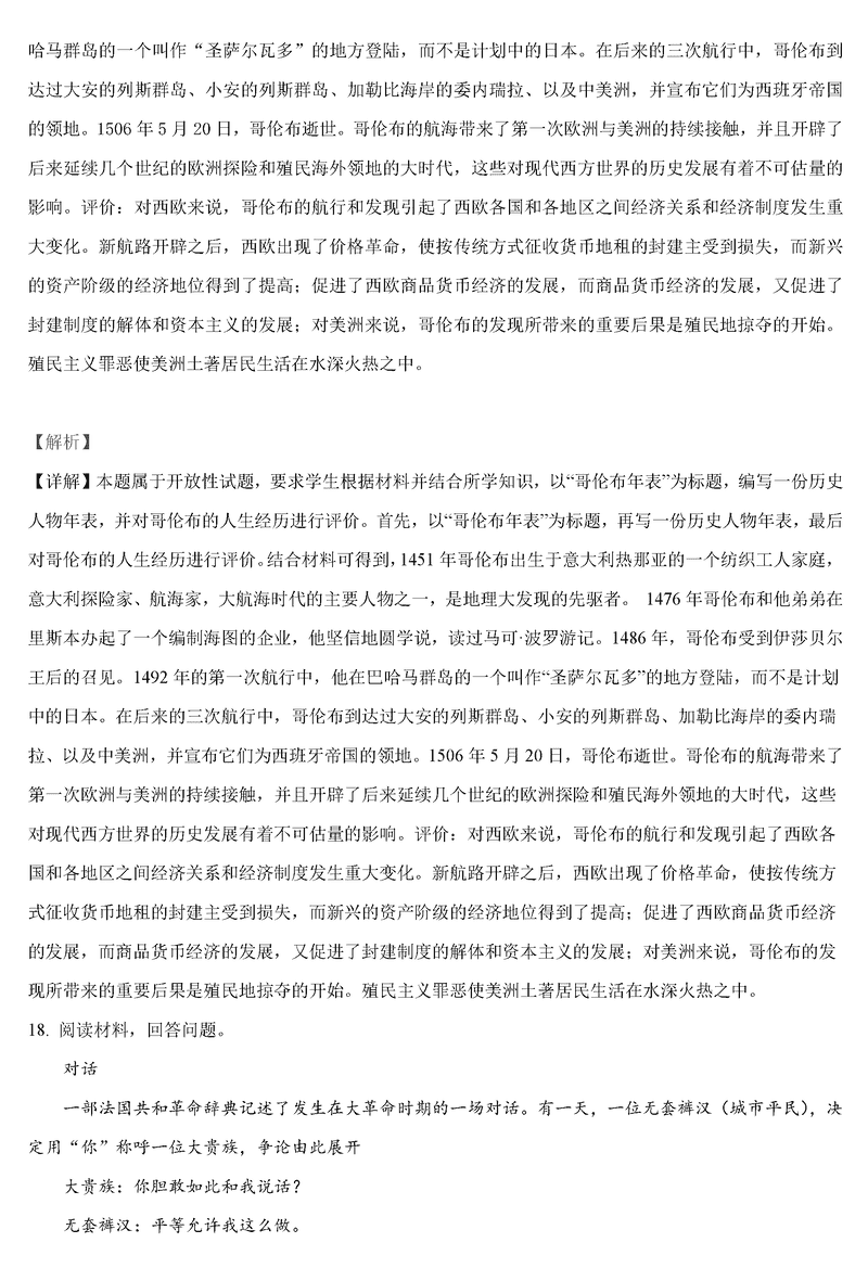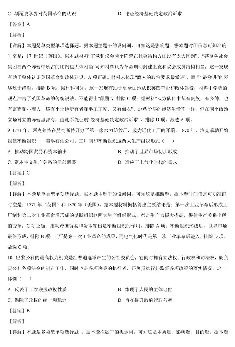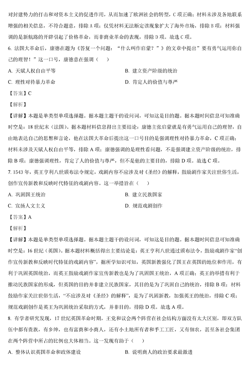历史试题及答案解析