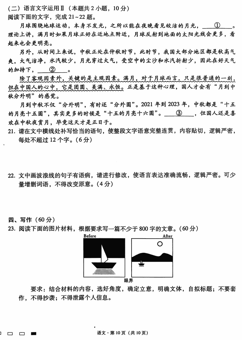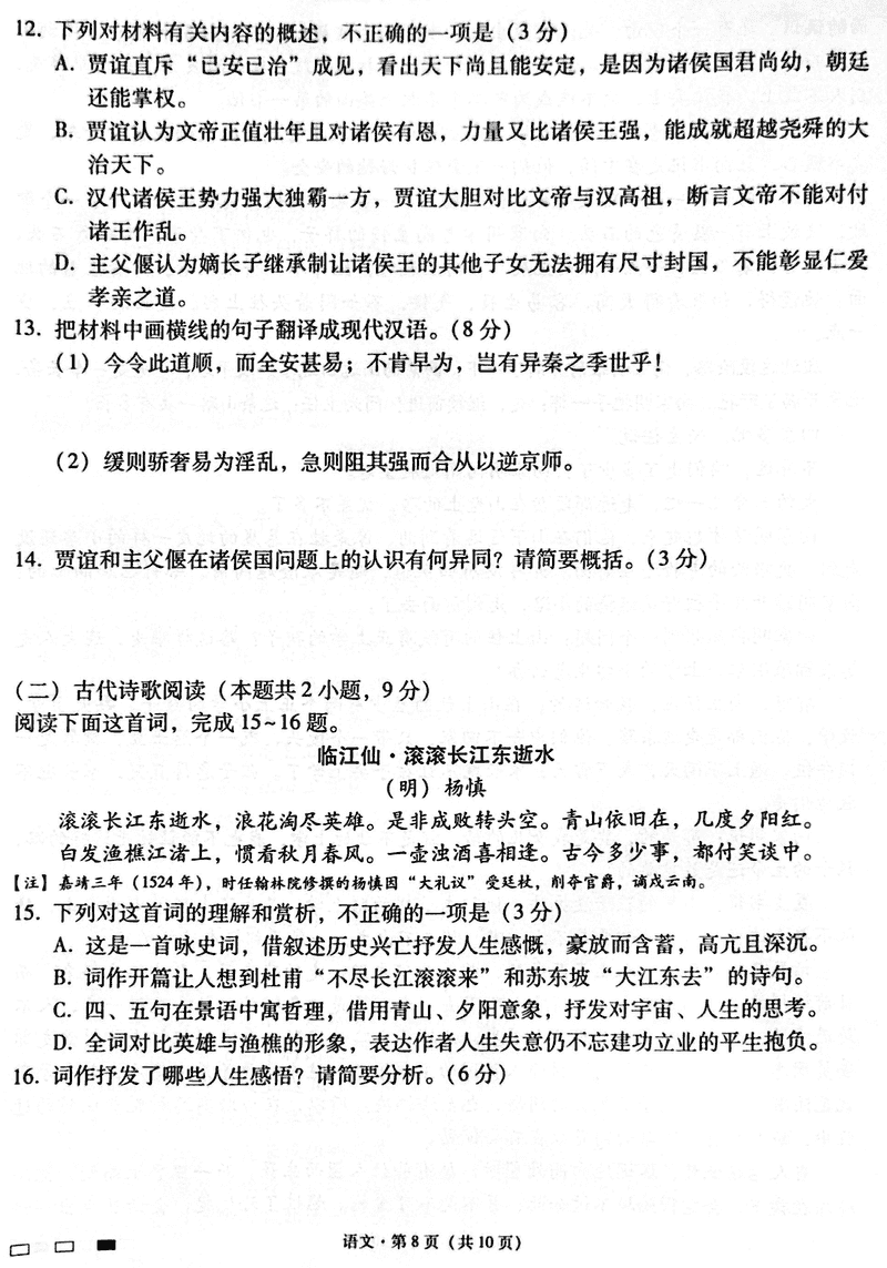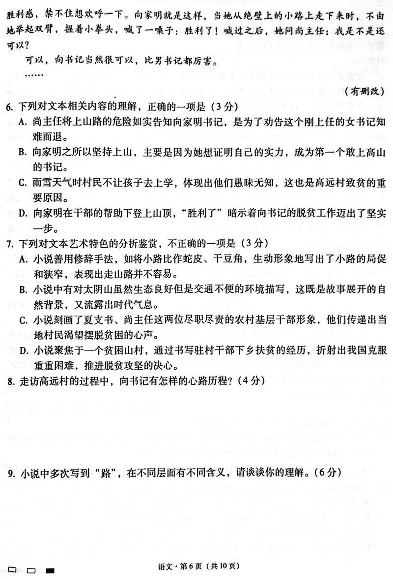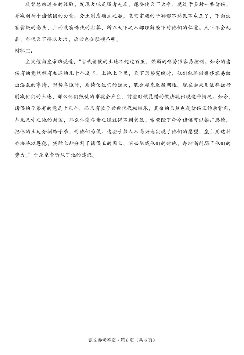 云师大附中2024-2025学年高三高考适应性月考(六)语文试题及答案