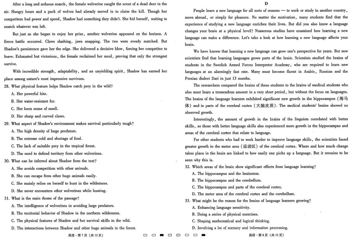 云师大附中2024-2025学年高三高考适应性月考(六)英语试题及答案
