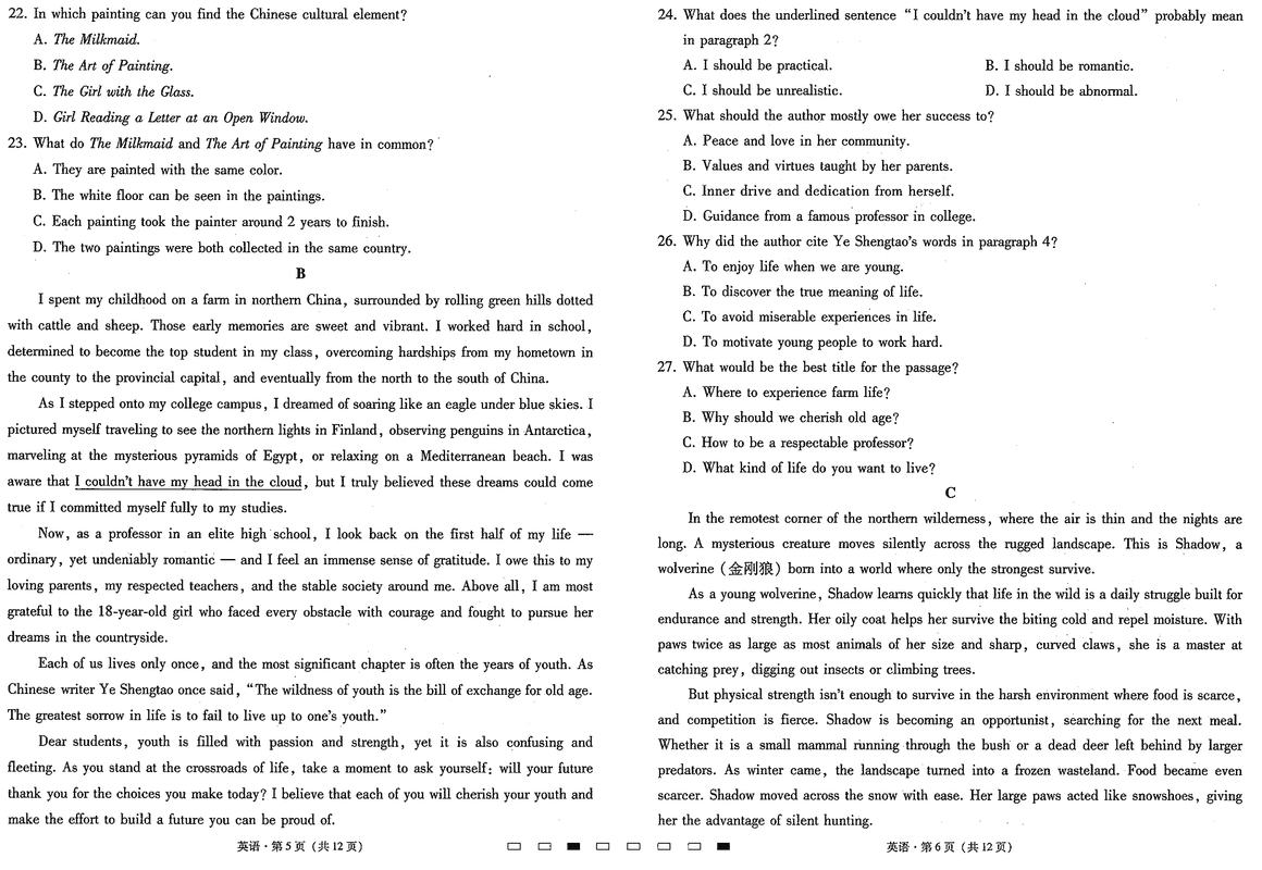 云师大附中2024-2025学年高三高考适应性月考(六)英语考试已于近日开考,为方便考生考后及时查看考试情况,查漏补缺、弥补不足,本文整理了试题答案解析相关信息!