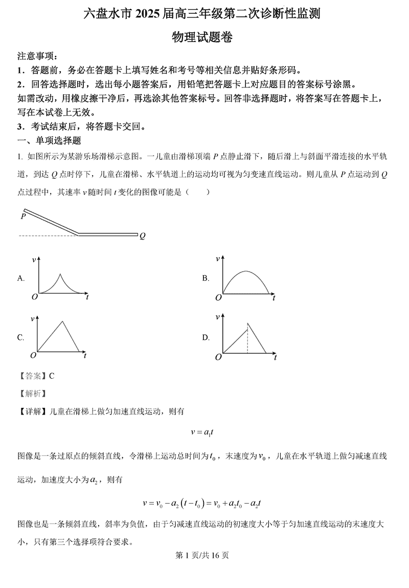 六盘水2025届高三上学期第二次诊断物理考试已于近日开考,为方便考生考后及时查看考试情况,查漏补缺、弥补不足,本文整理了试题答案解析相关信息!