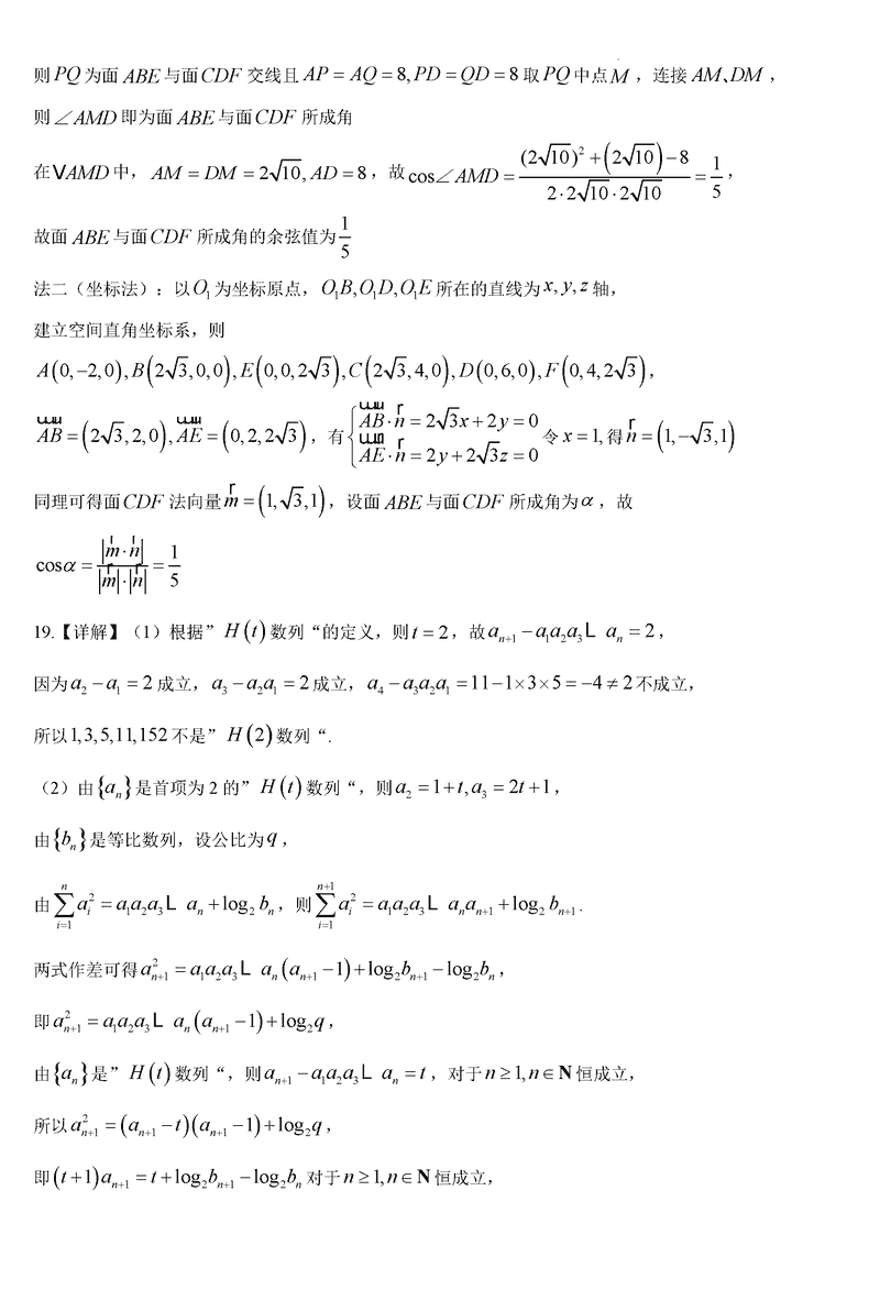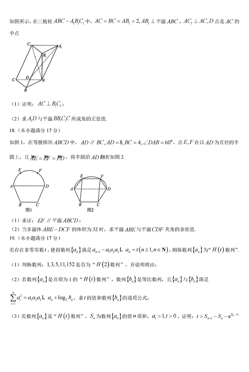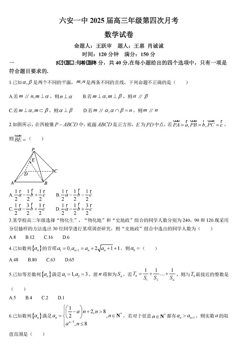 六安一中2025届高三第四次月考数学试题及答案