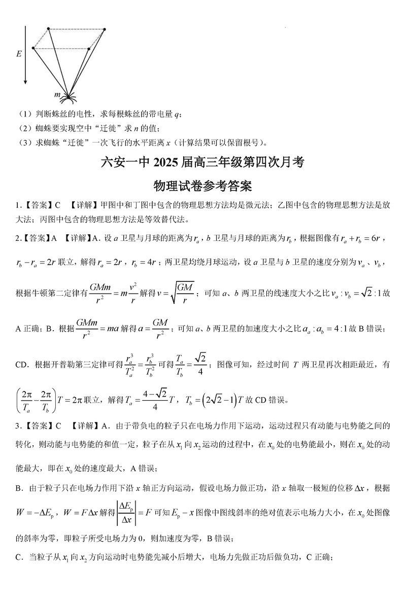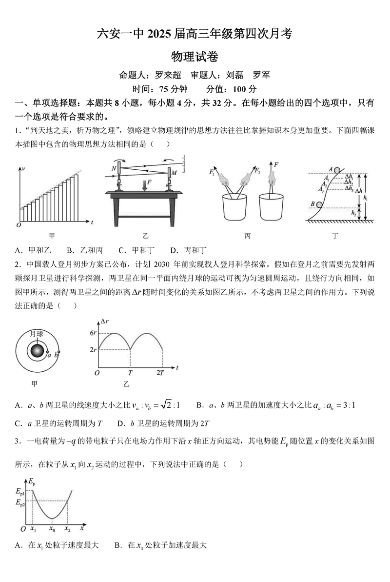 六安一中2025届高三第四次月考物理考试已于近日开考,为方便考生考后及时查看考试情况,查漏补缺、弥补不足,本文整理了试题答案解析相关信息!