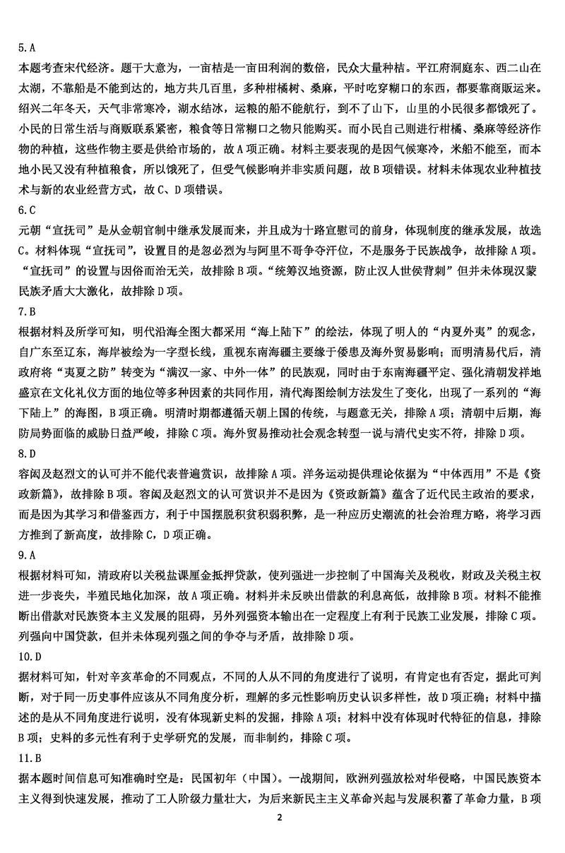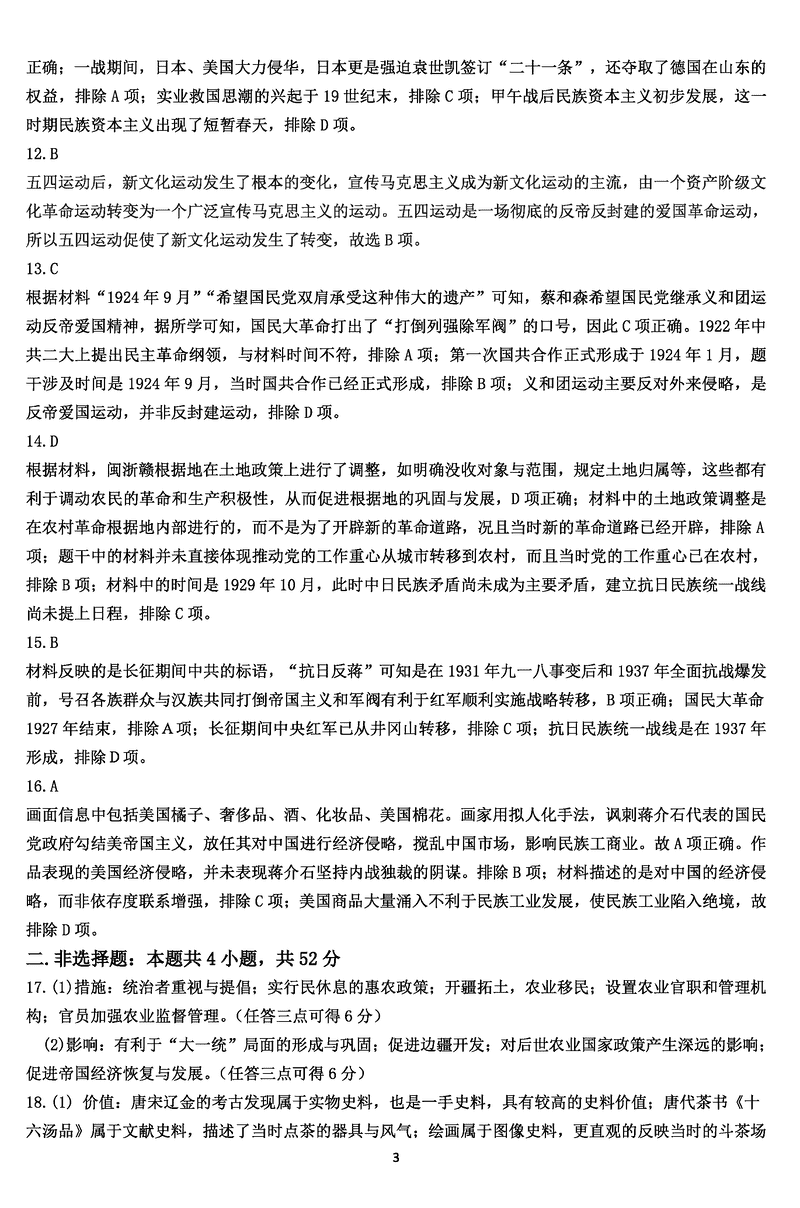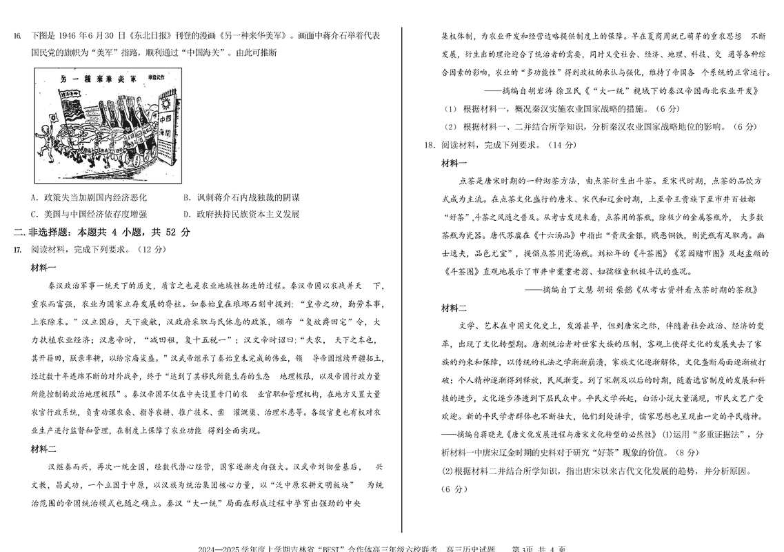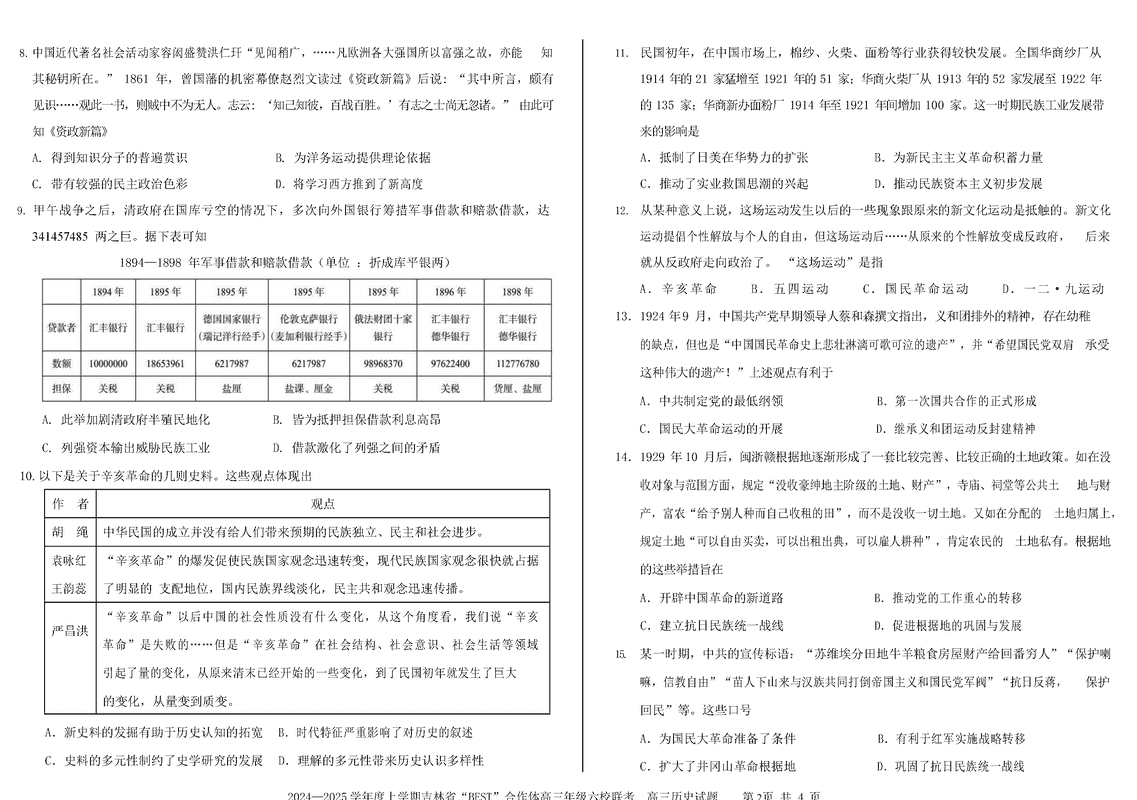 吉林BEST合作体六校2025届高三上学期第三次联考历史试题及答案