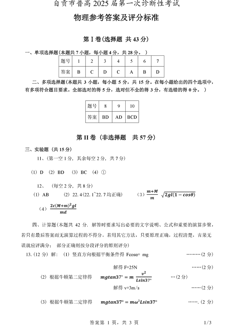 四川自贡普高2025届高三第一次诊断性考物理考试已于近日开考,为方便考生考后及时查看考试情况,查漏补缺、弥补不足,本文整理了试题答案解析相关信息!