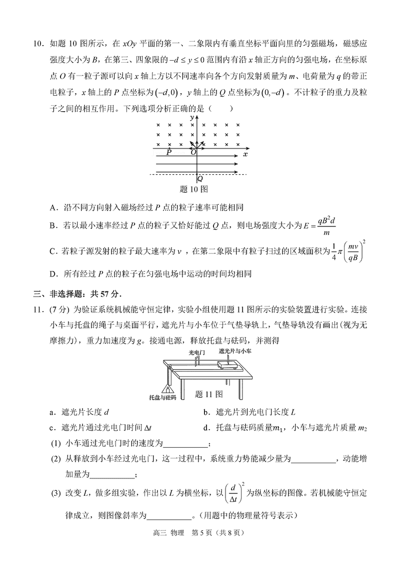 重庆西南大学附中2025届高三上学期11月阶段性检测(二)物理考试已于近日开考,为方便考生考后及时查看考试情况,查漏补缺、弥补不足,本文整理了试题答案解析相关信息!