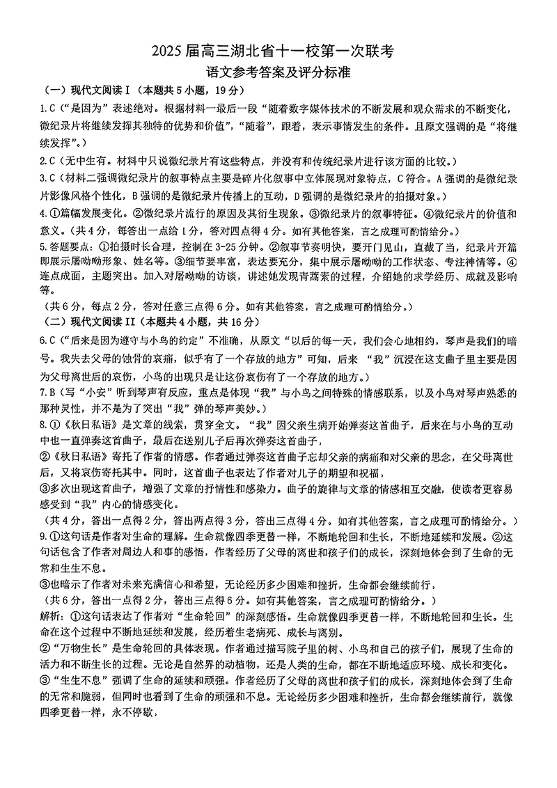 湖北十一校2025届高三12月第一次联考语文试题及答案