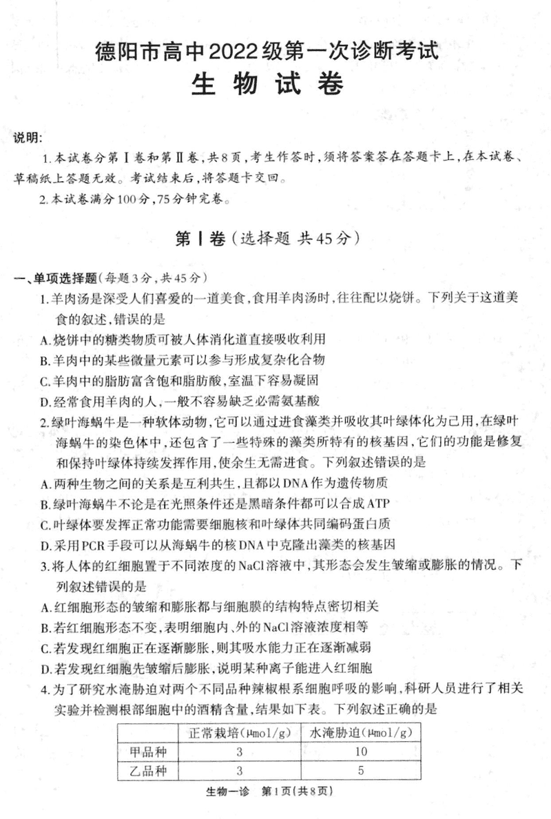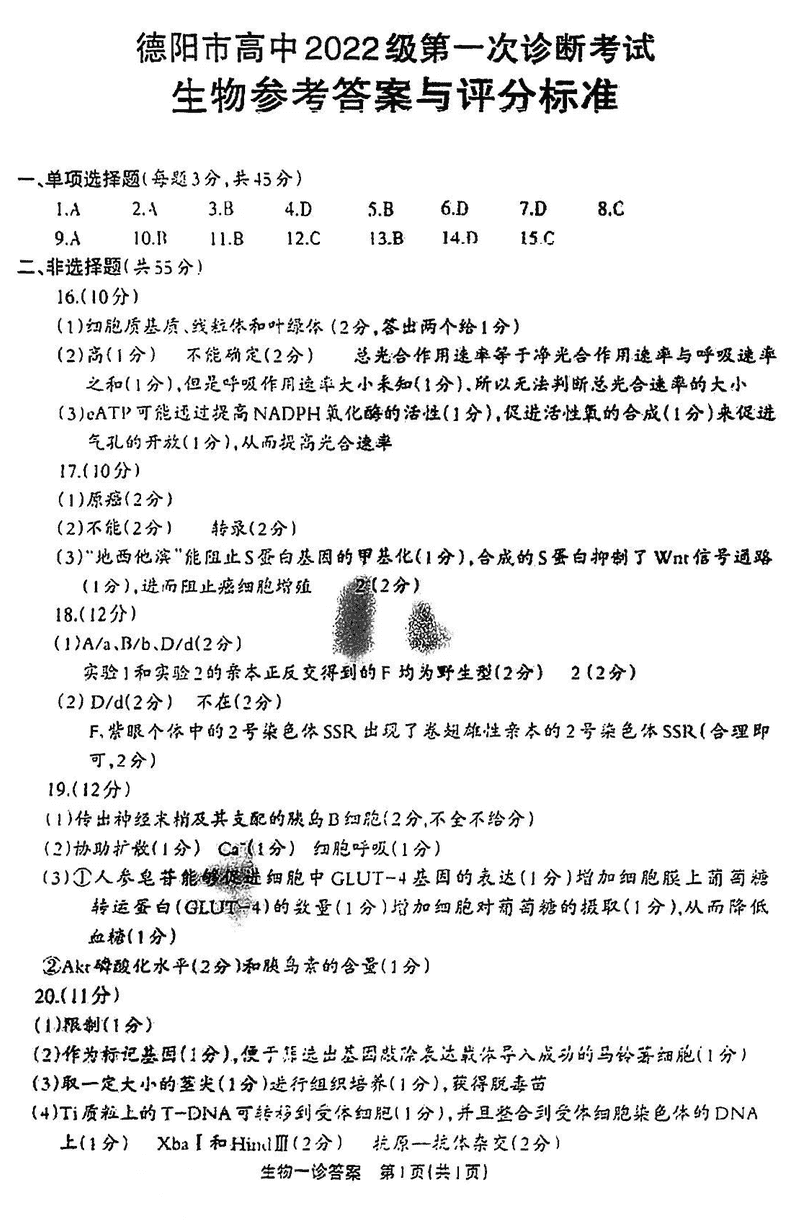 德阳一诊2025届高三第一次诊断考试生物试题及答案 时间:2024-12-05 17:16 四川 理综试题 德阳一诊2025届高三第一次诊断生物考试已于近日开考,为方便考生考后及时查看考试情况,查漏补缺、弥补不足,本文整理了试题答案解析相关信息! 汇总:德阳一诊2025届高三第一次诊断考试试题及答案汇总 生物试题及答案解析
