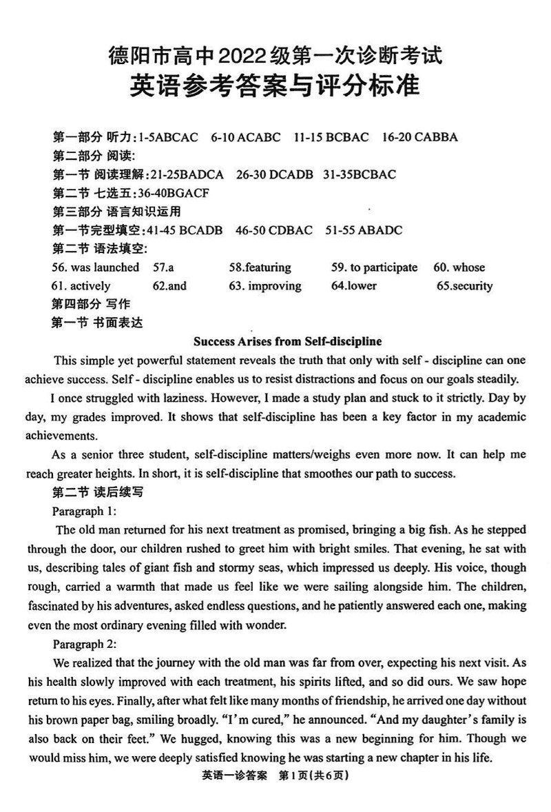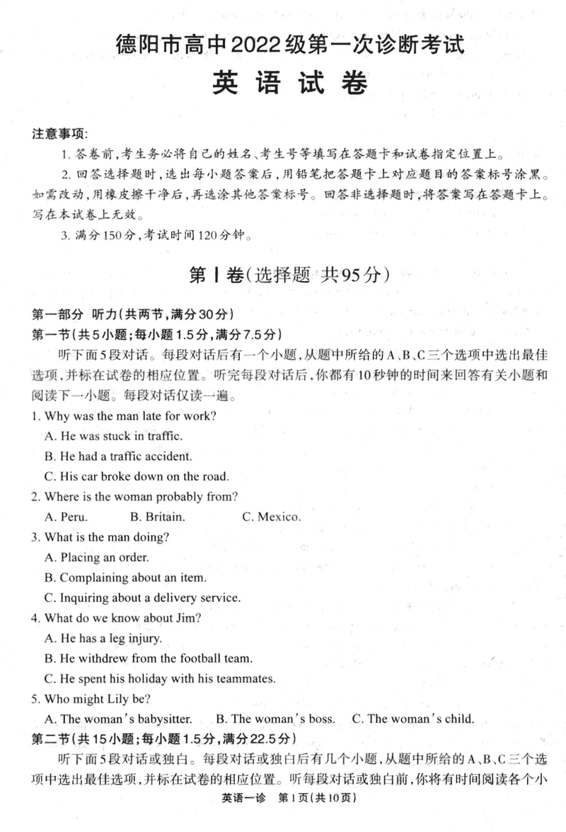 德阳一诊2025届高三第一次诊断英语考试已于近日开考,为方便考生考后及时查看考试情况,查漏补缺、弥补不足,本文整理了试题答案解析相关信息!