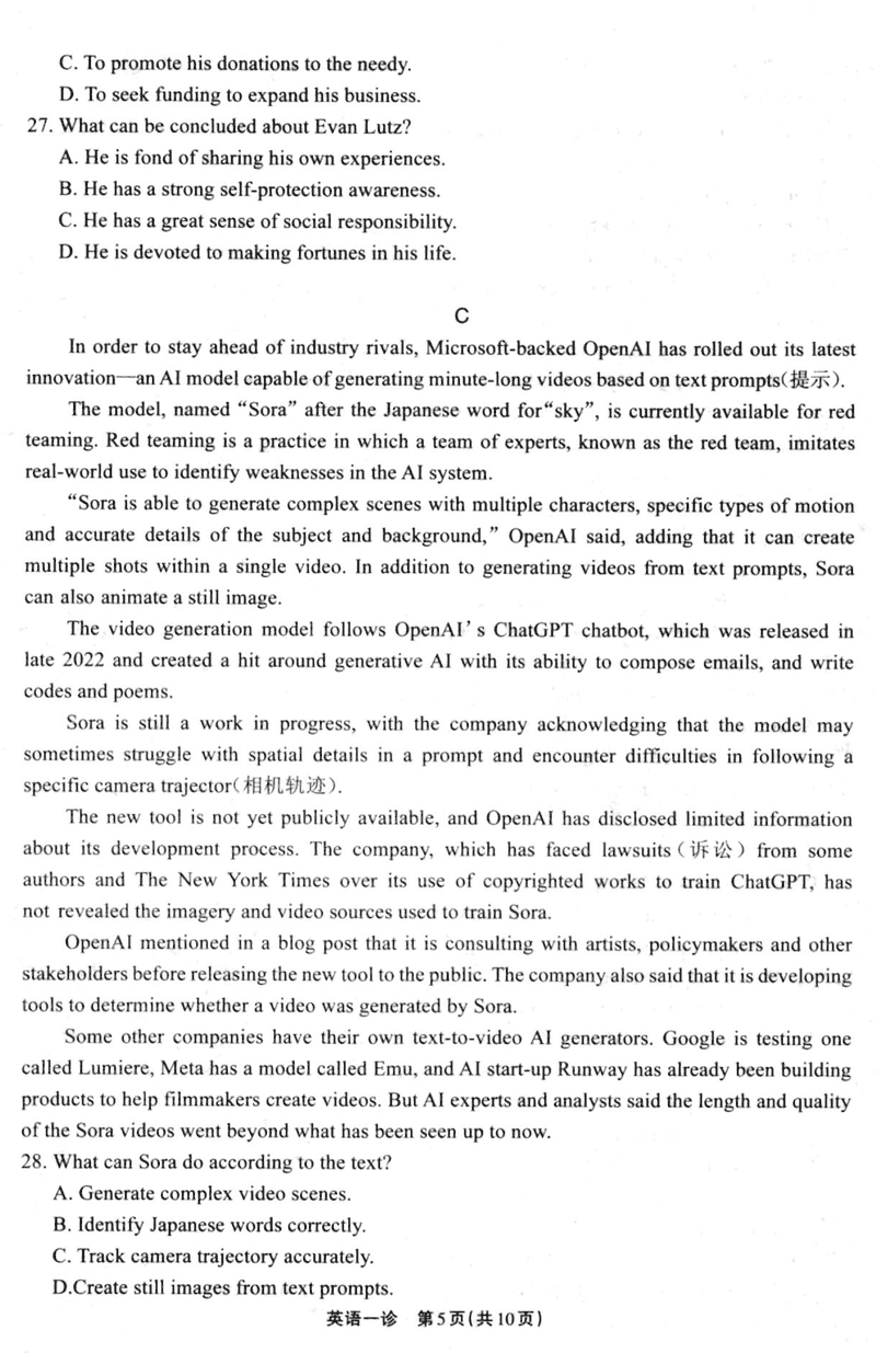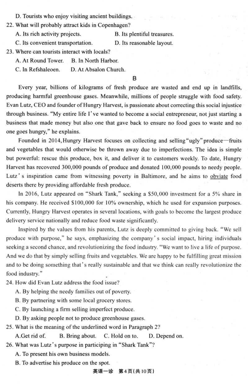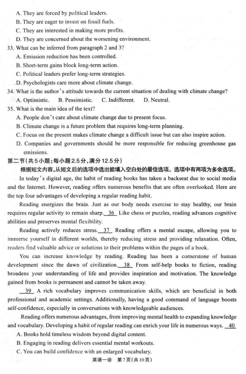 德阳一诊2025届高三第一次诊断考试英语试题及答案