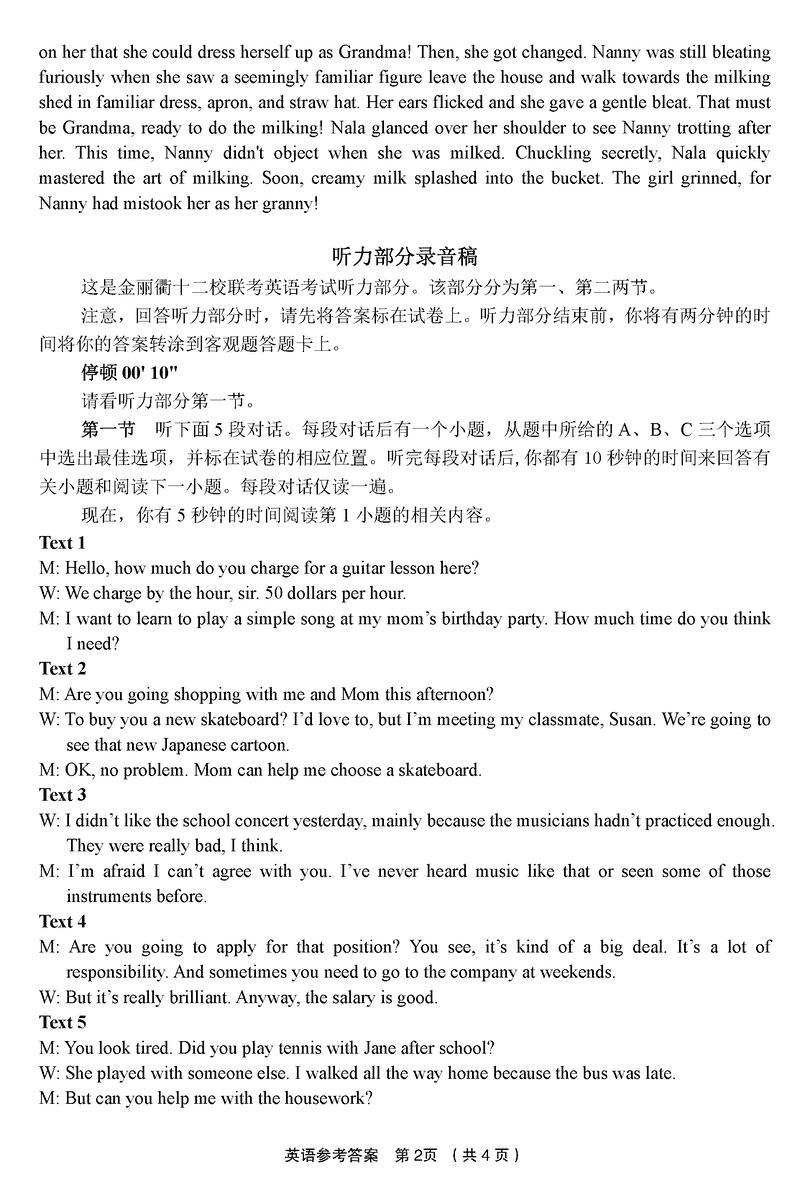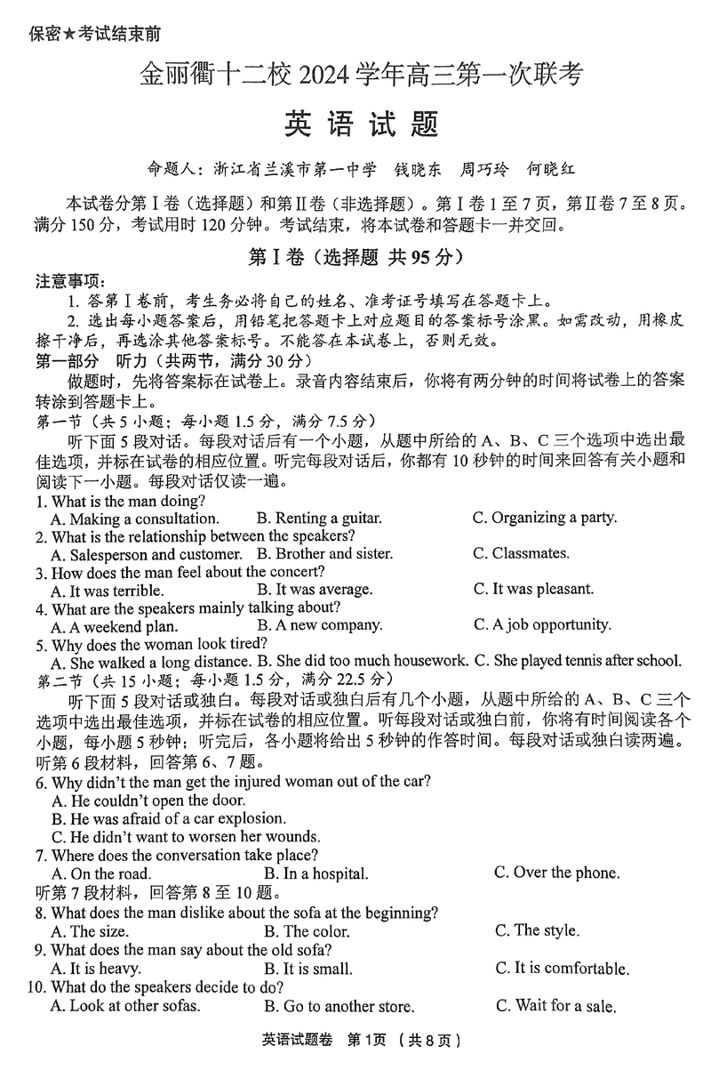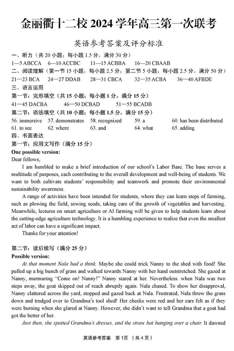 金丽衢十二校2024年高三上学期第一次联考英语考试已于近日开考,为方便考生考后及时查看考试情况,查漏补缺、弥补不足,本文整理了试题答案解析相关信息!