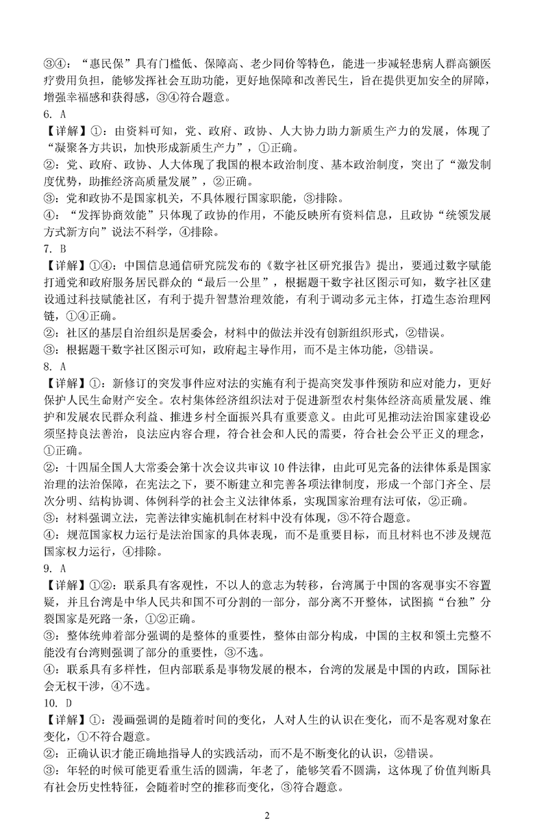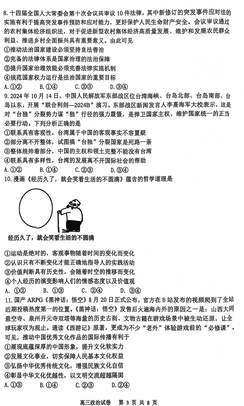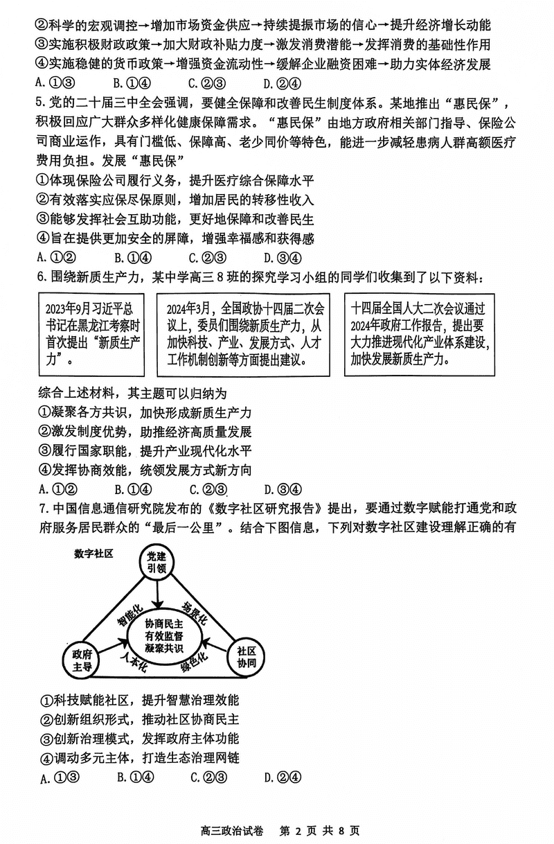 大连滨城高中联盟2025届高三上学期期中Ⅱ政治试题及答案