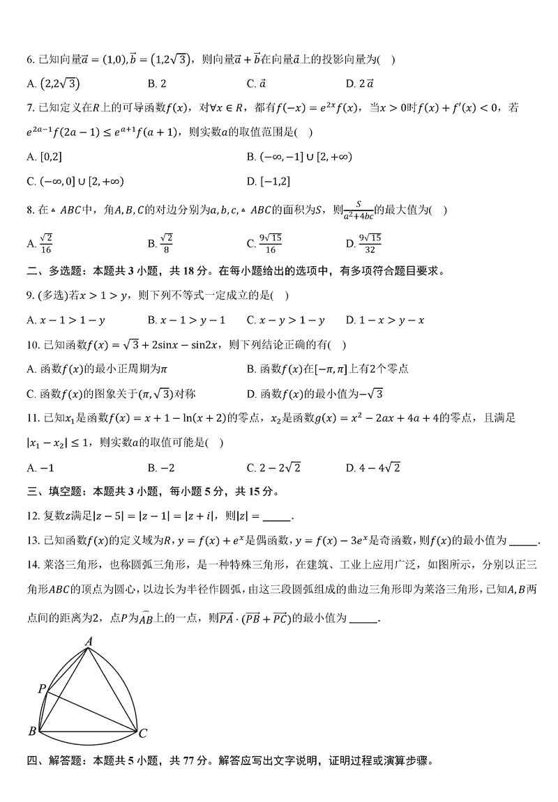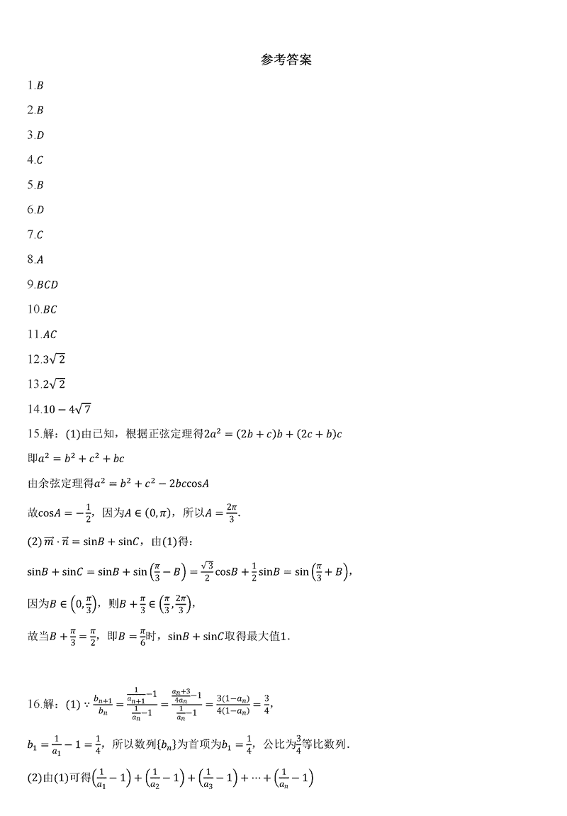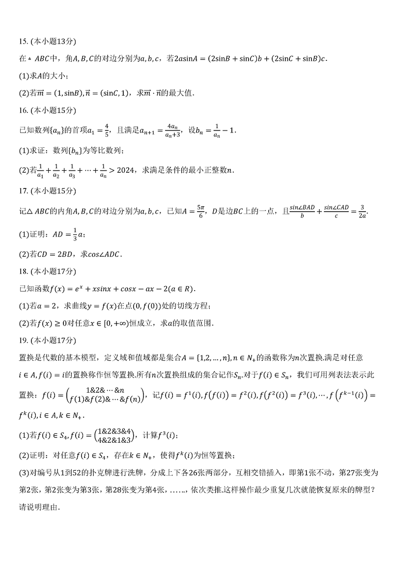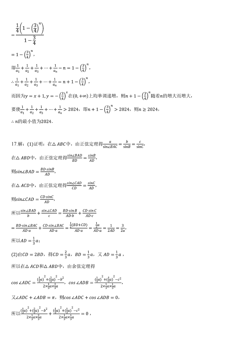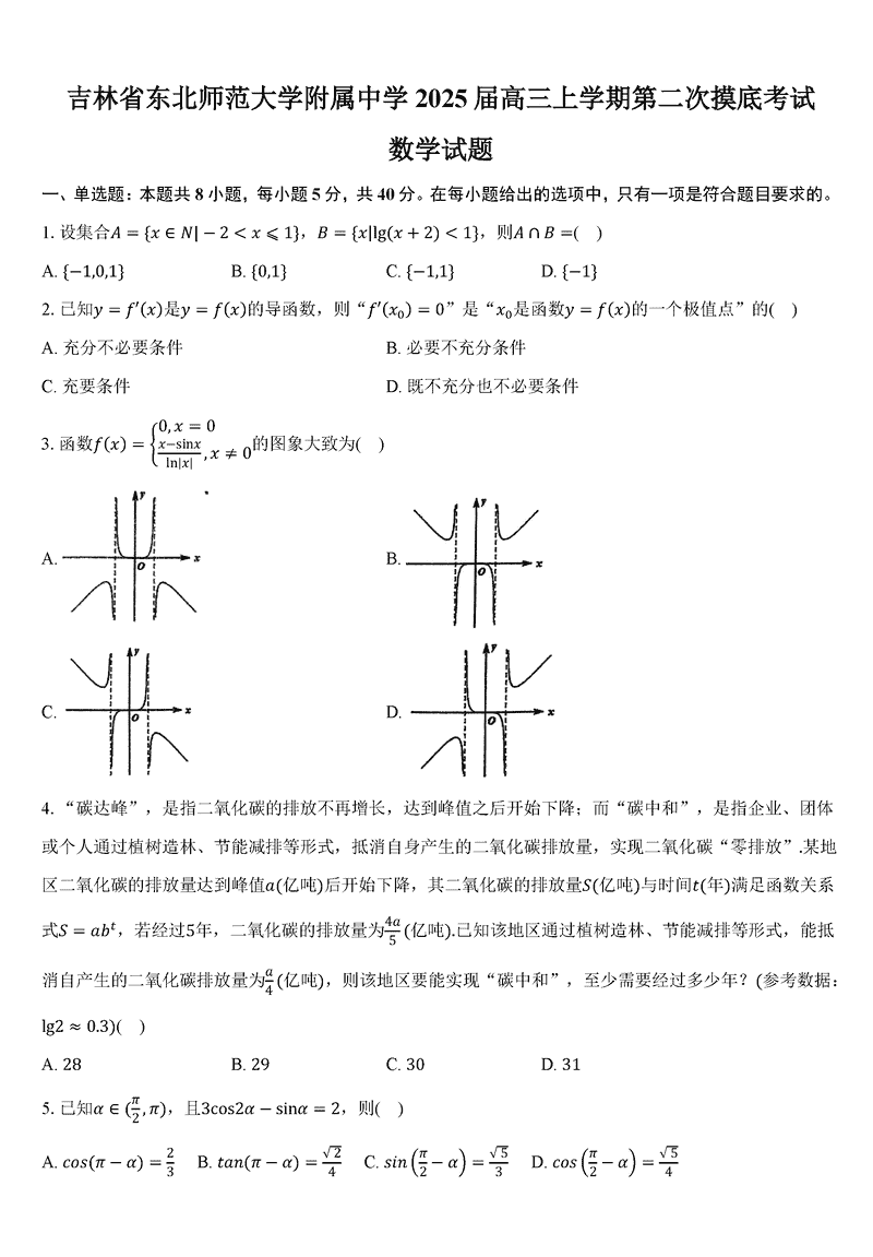 东北师大附中2024-2025学年高三第二次摸底数学试题及答案