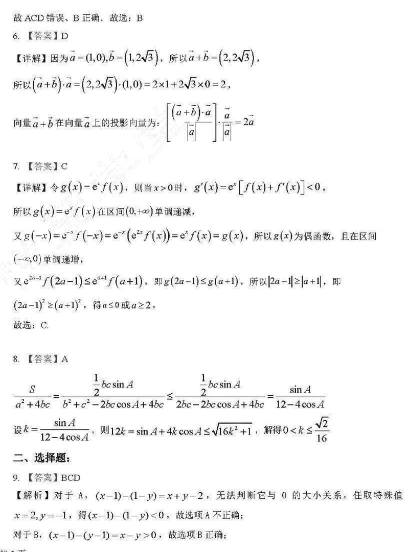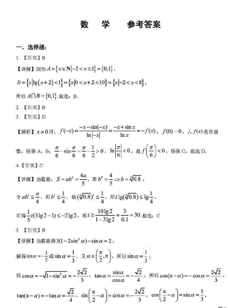 数学试题及答案解析
